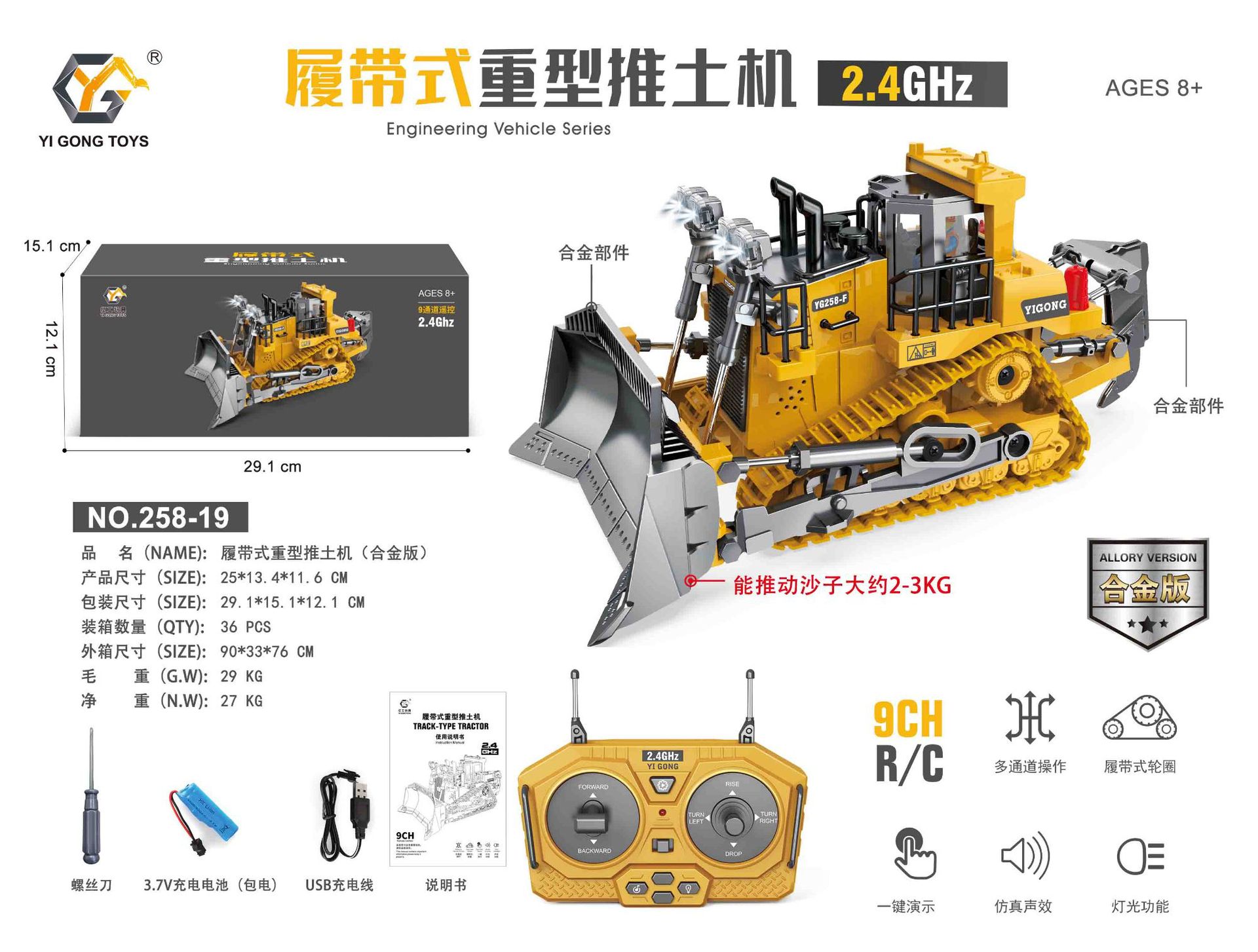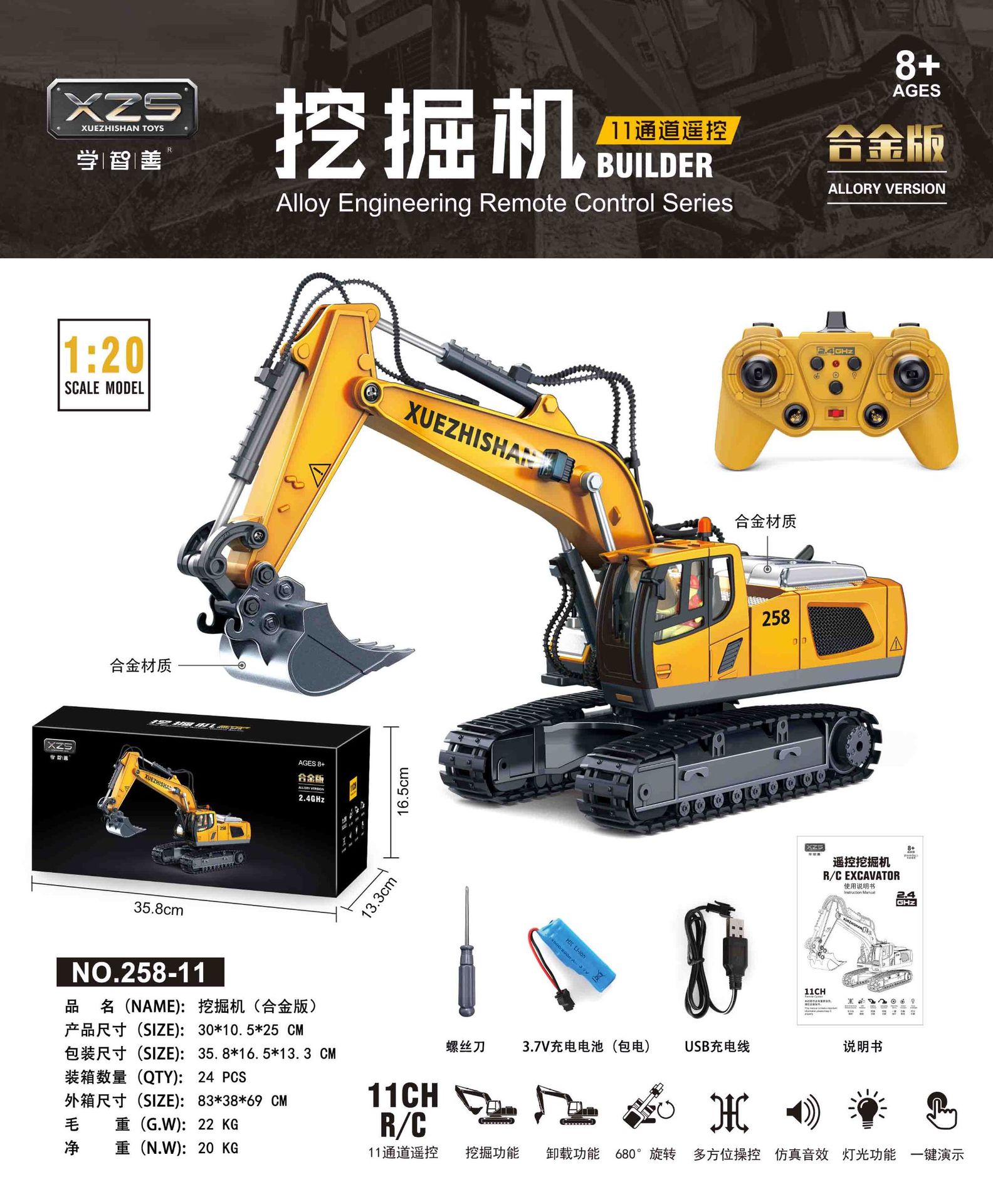 跨境亚马逊男孩合金工程车玩具2.4G多通道带灯光挖掘机推土车模型