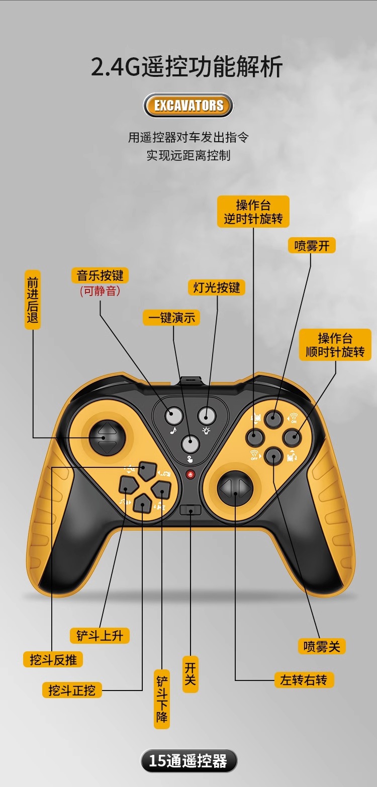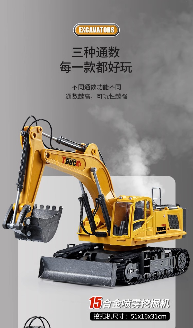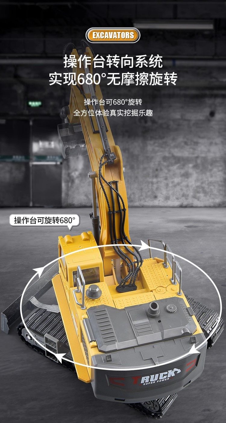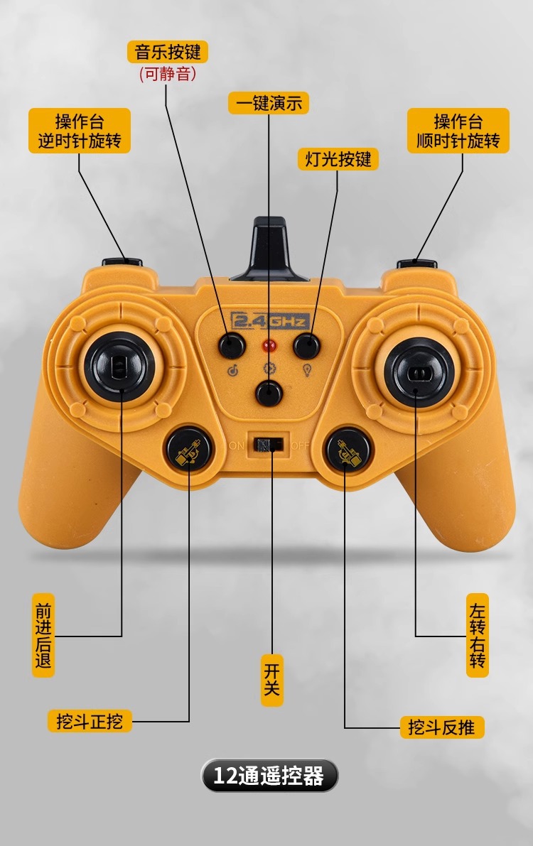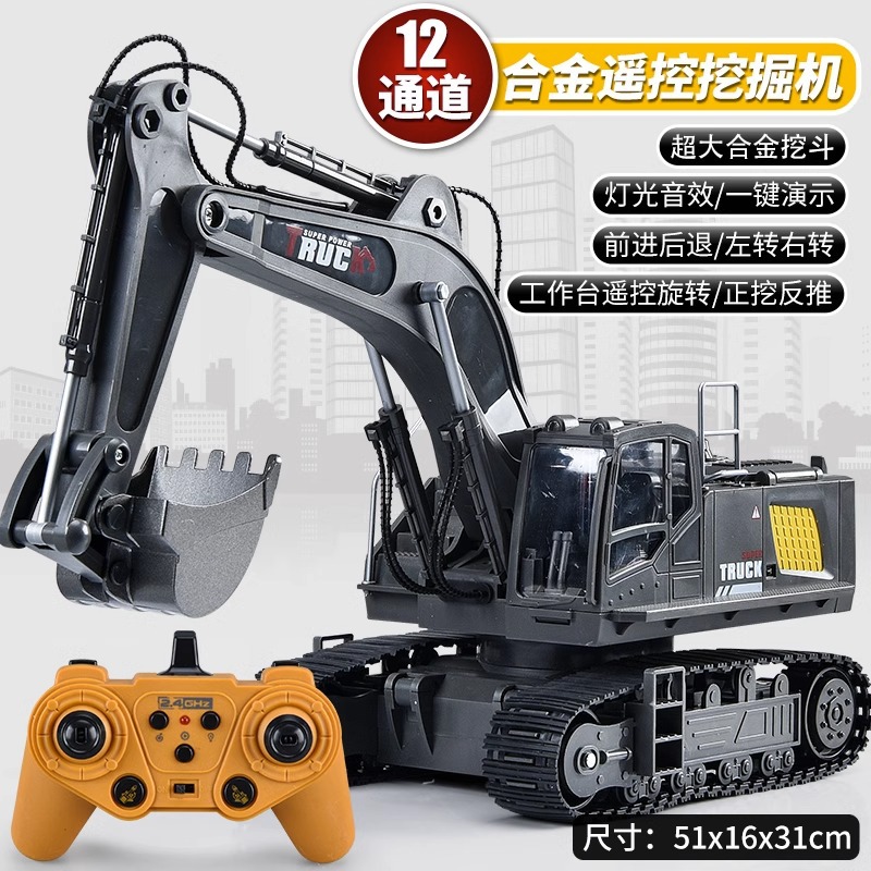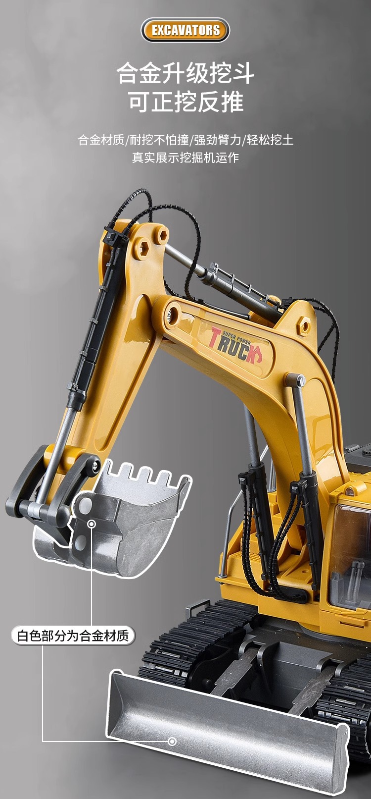 跨境批发超大号工程车合金遥控挖掘机仿真电动推土勾机挖土中英文
