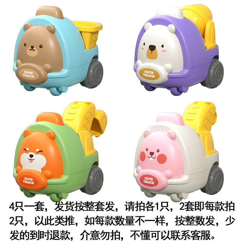 抖音爆款萌宠玩具车男女孩儿童惯性小汽车耐摔卡通工程车套装批发