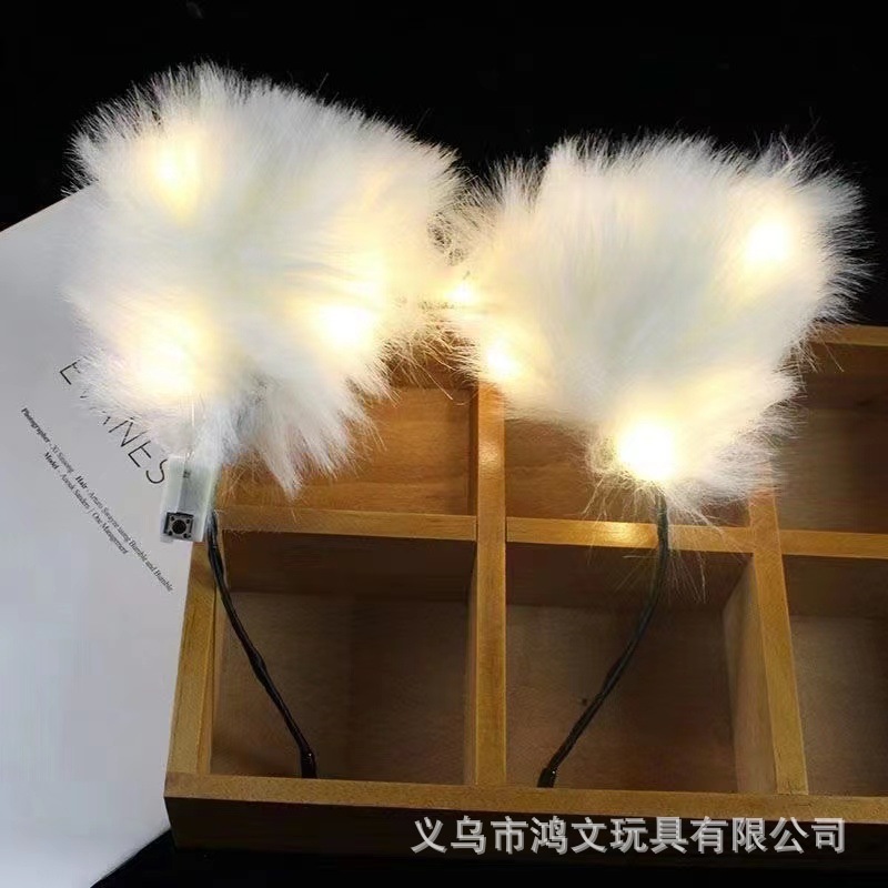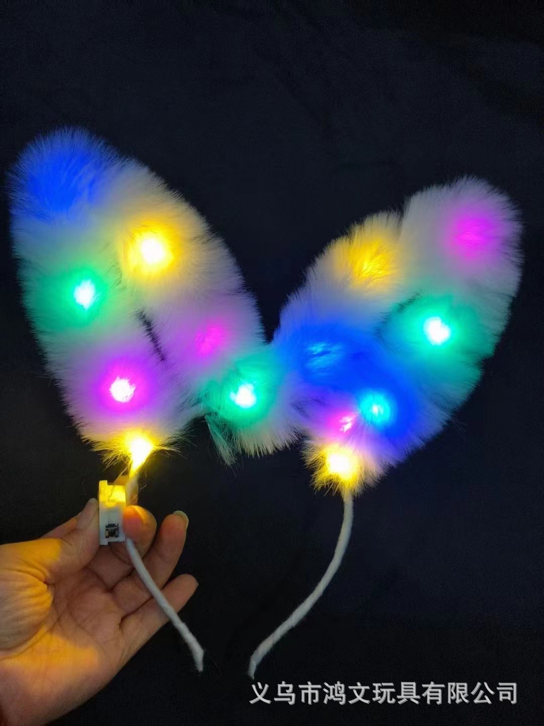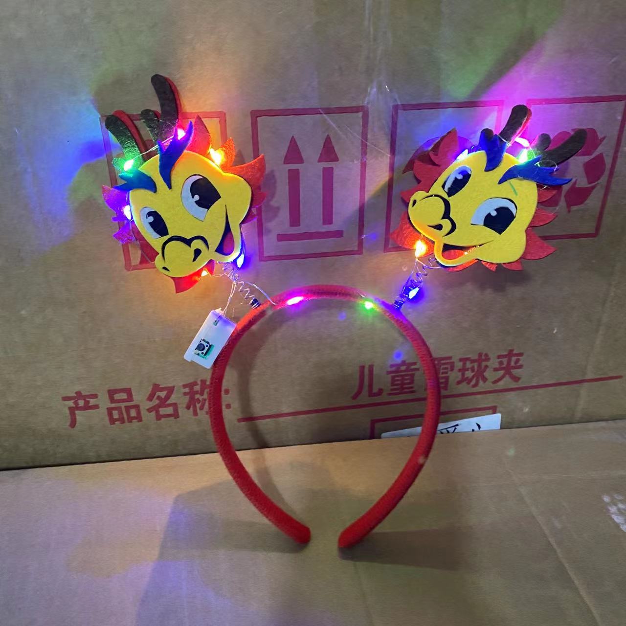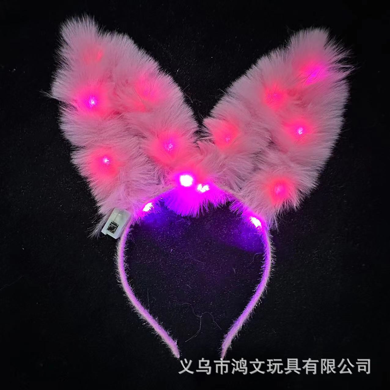 2024龙年热卖龙角花灯发光发箍舞会头饰14灯新款毛毛兔耳玩具批发