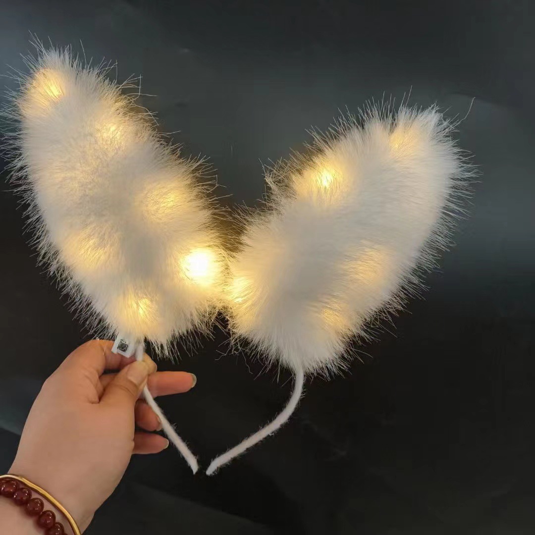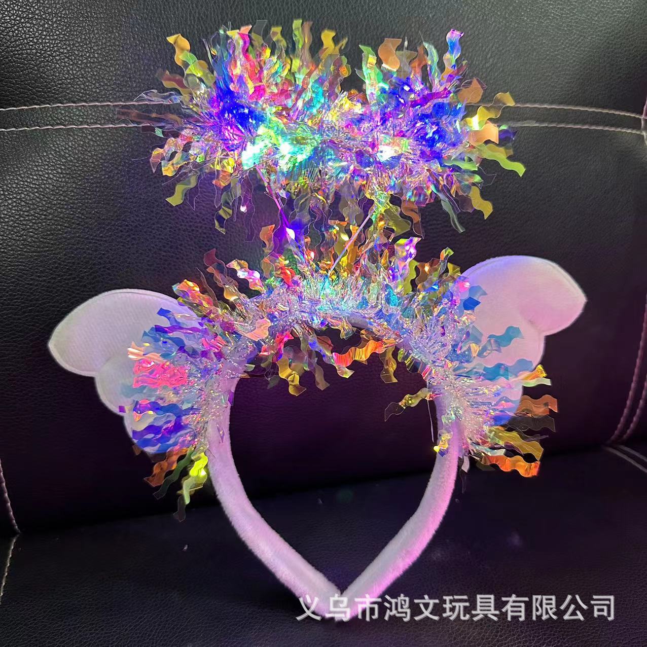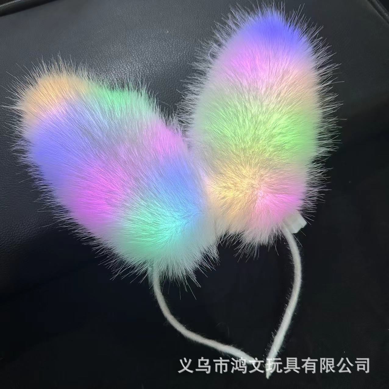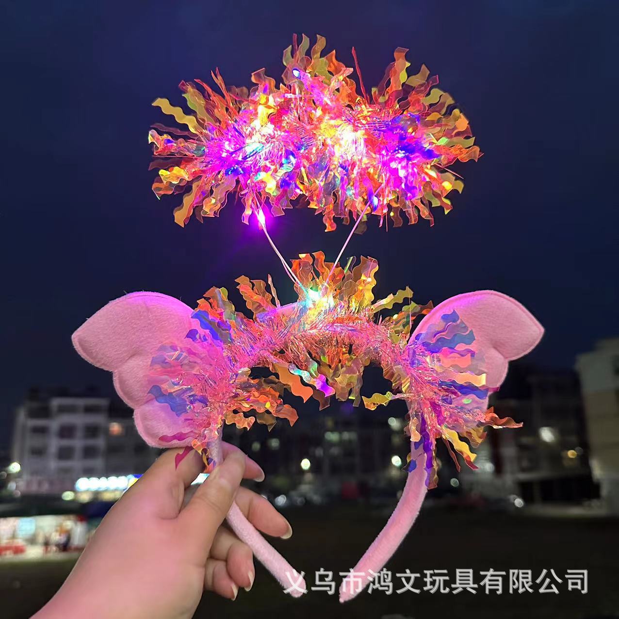 2024龙年热卖龙角花灯发光发箍舞会头饰14灯新款毛毛兔耳玩具批发