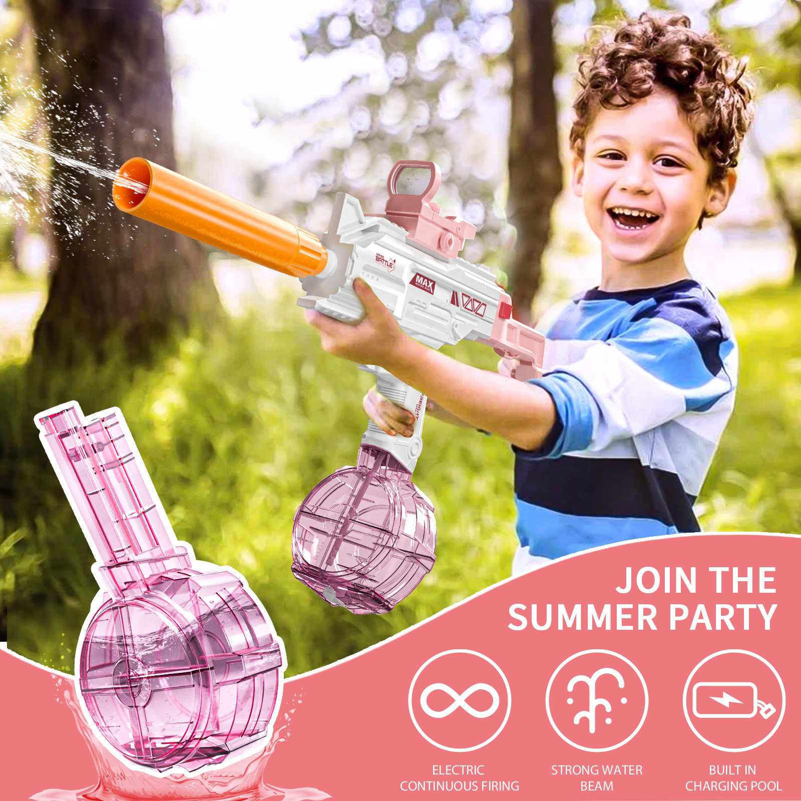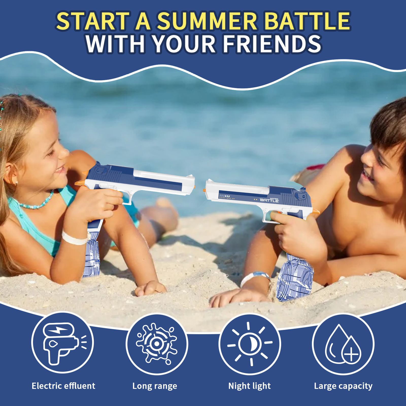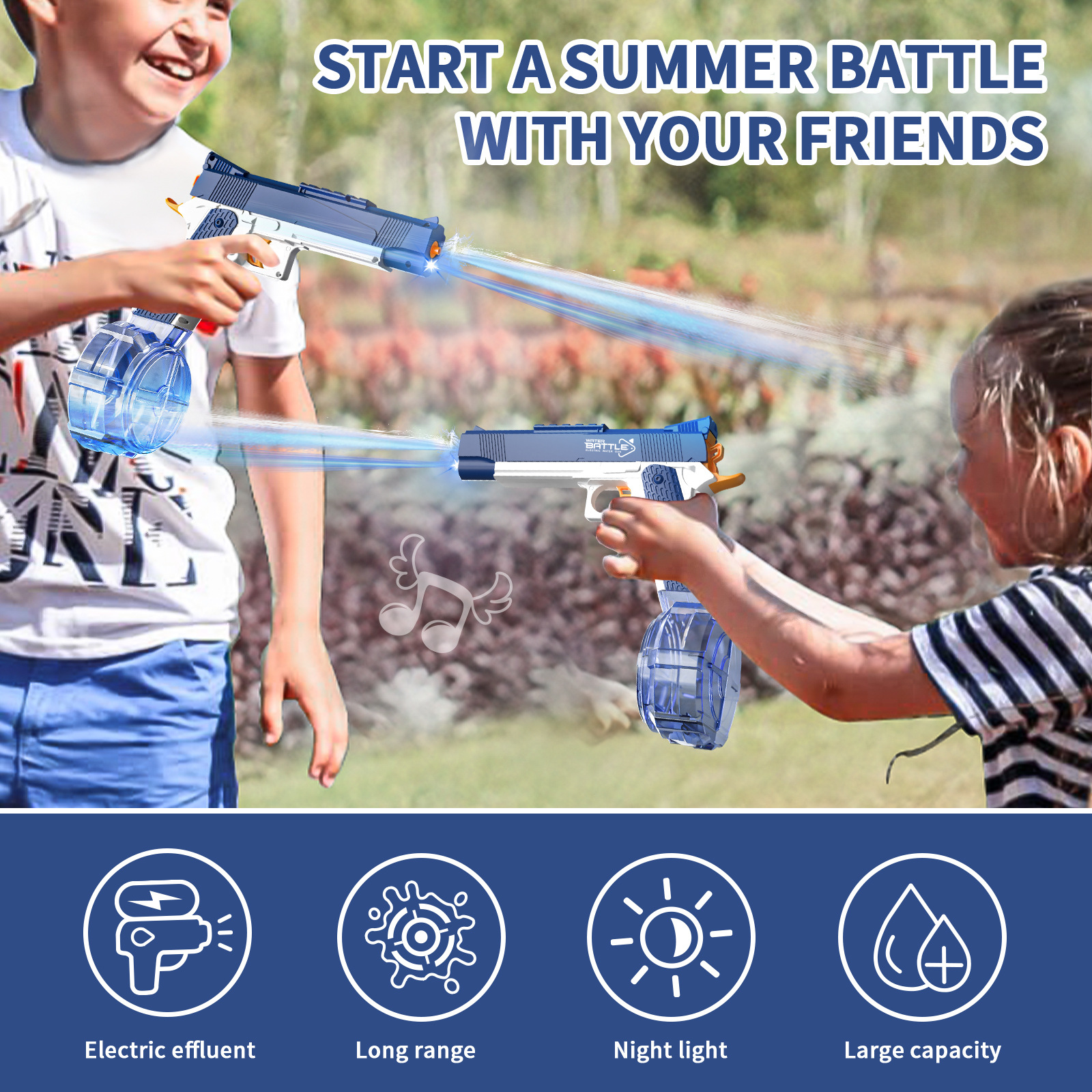 跨境新品1911手枪电动水枪连发带灯光夏季户外大容量呲水水枪玩具