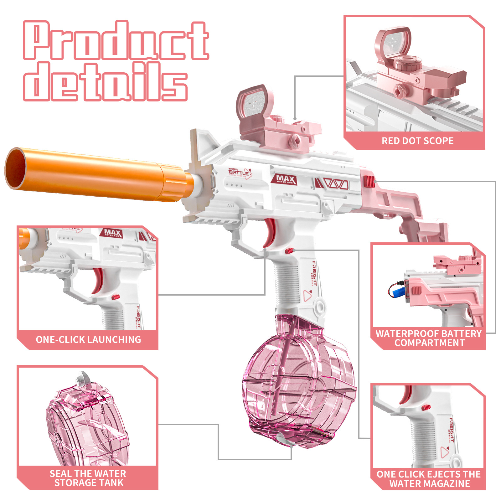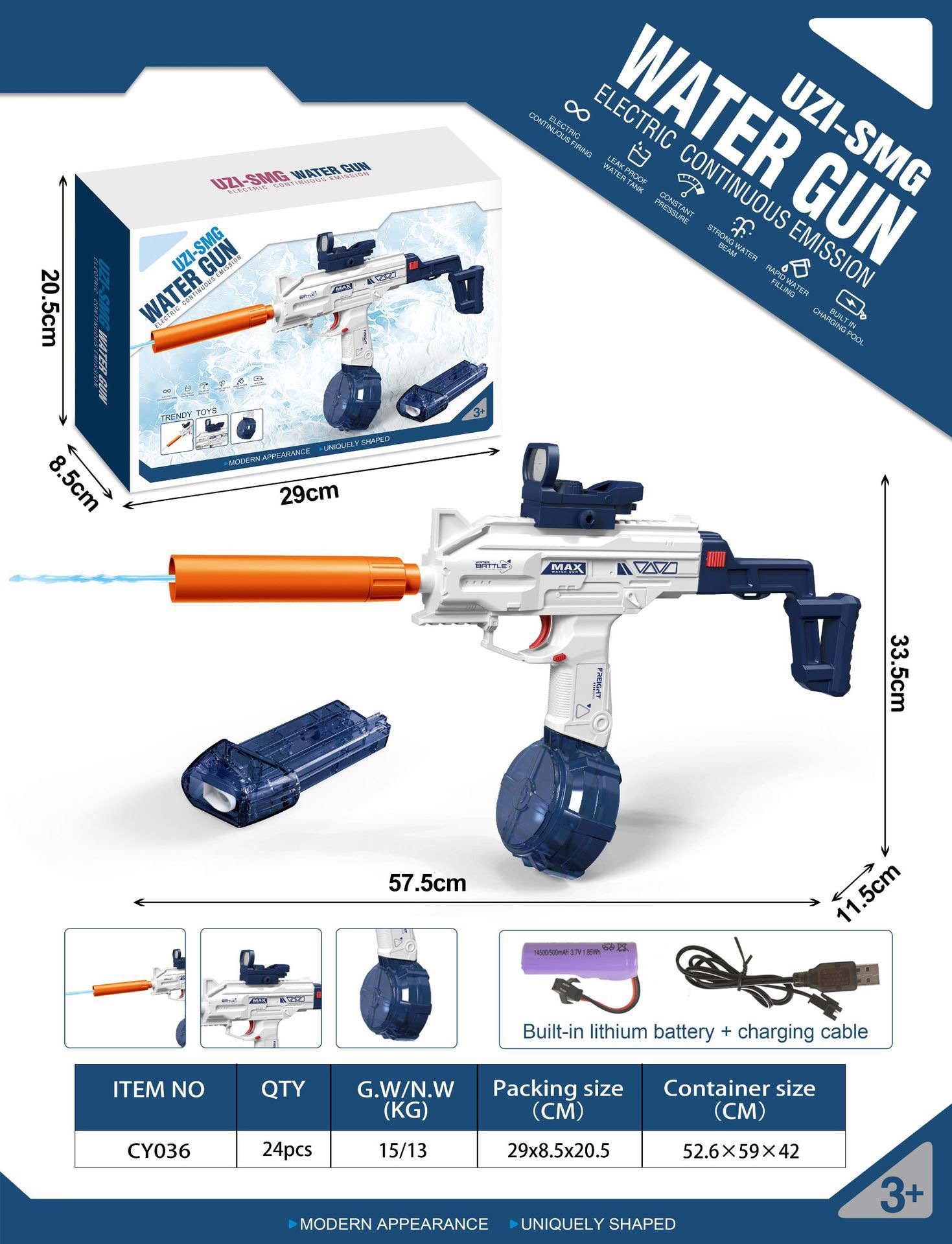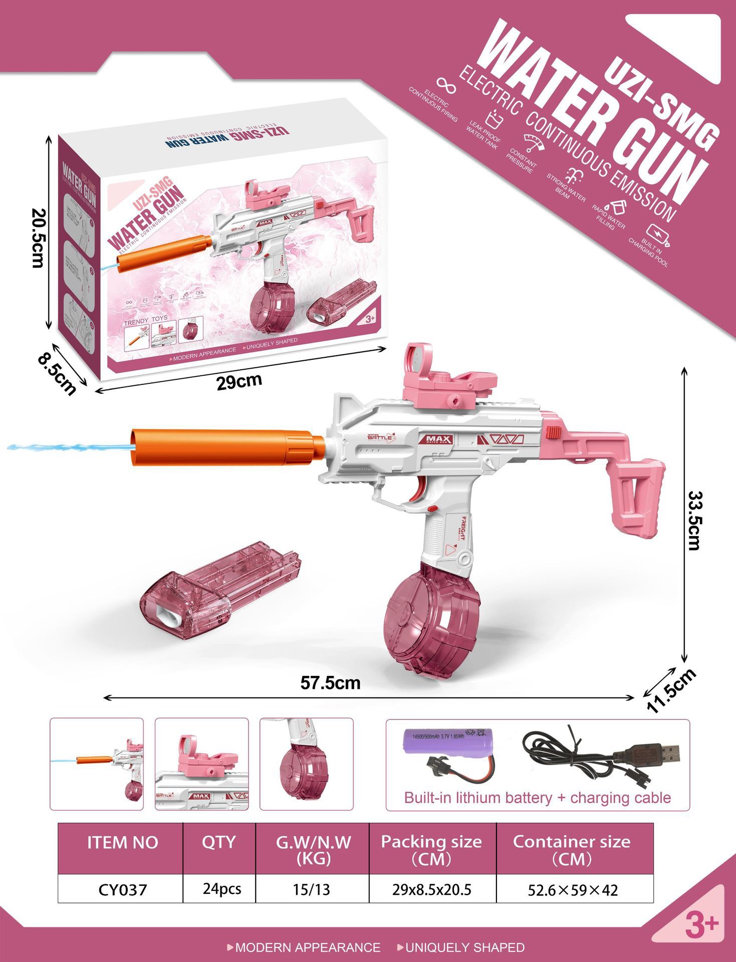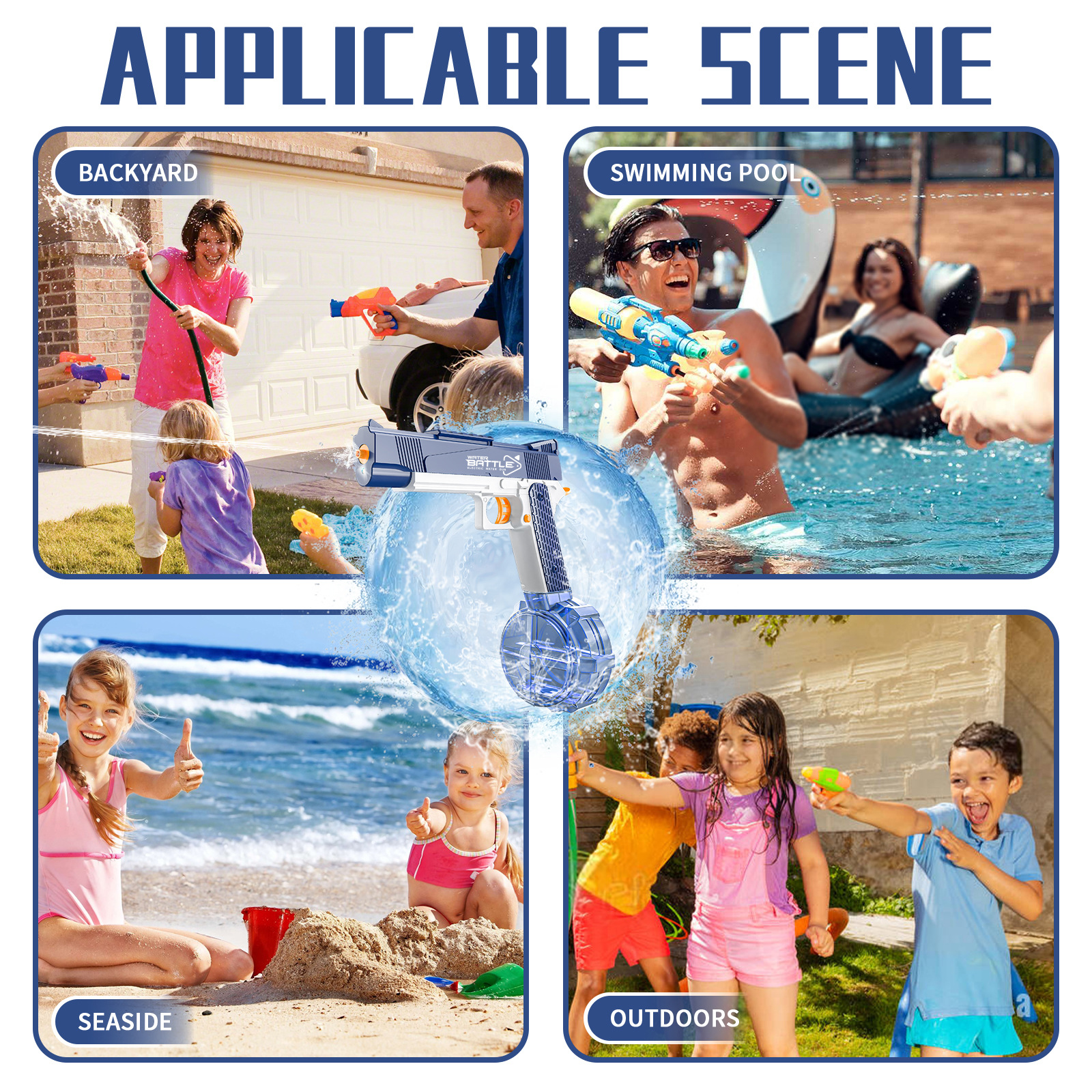 跨境新品1911手枪电动水枪连发带灯光夏季户外大容量呲水水枪玩具