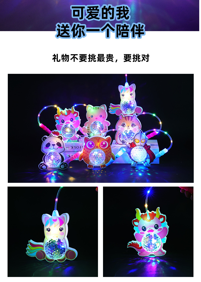 2023新款卡通投影灯笼创意闪光儿童发光玩具波波球新年元宵龙灯笼