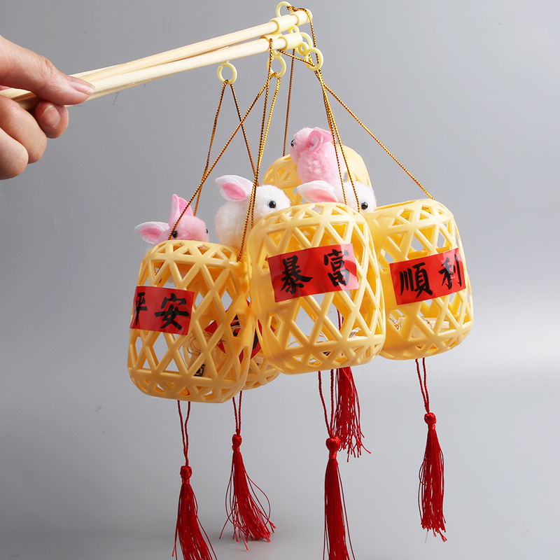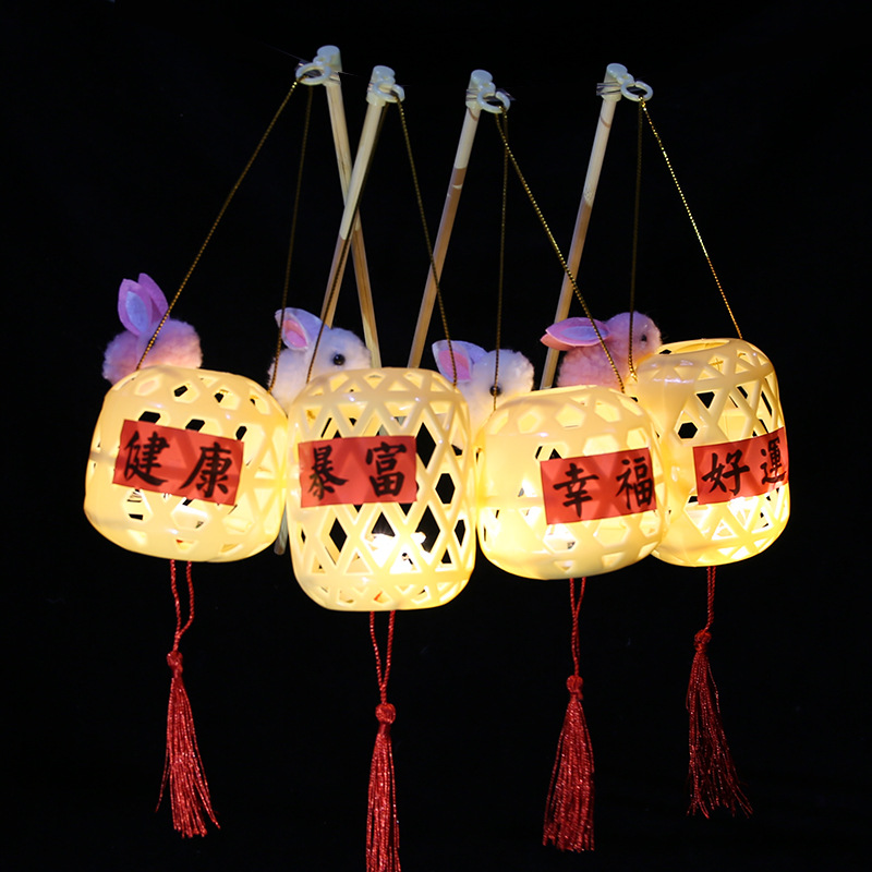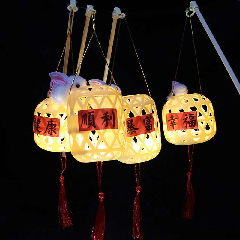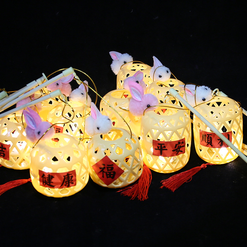 新款发光兔子塑料灯笼中秋节手提发光兔子玩具小礼品古风景区摆摊