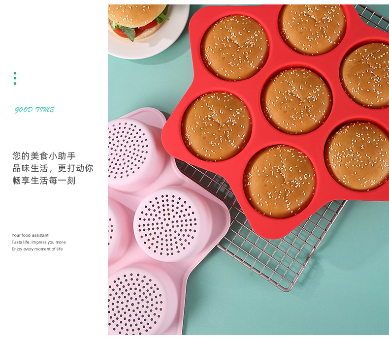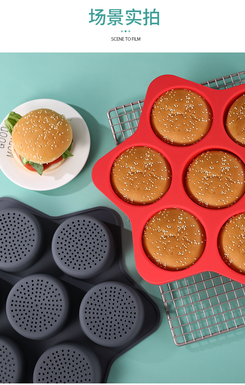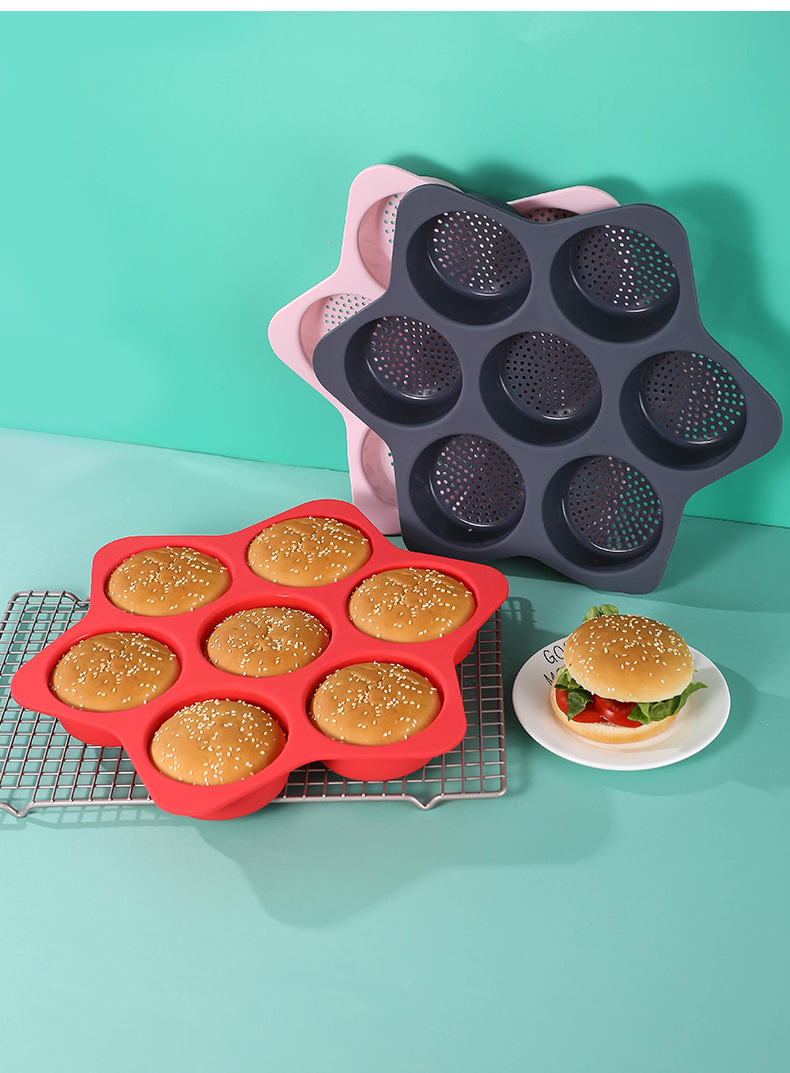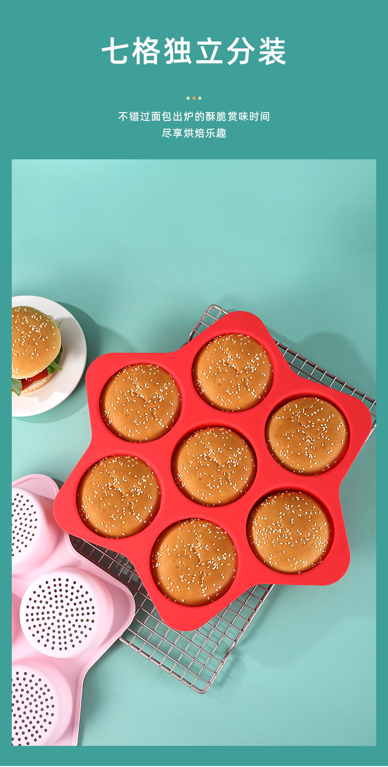 硅胶 7孔食品级硅胶模工具烘焙圆形汉堡模面包蛋糕烤箱烤盘模具
