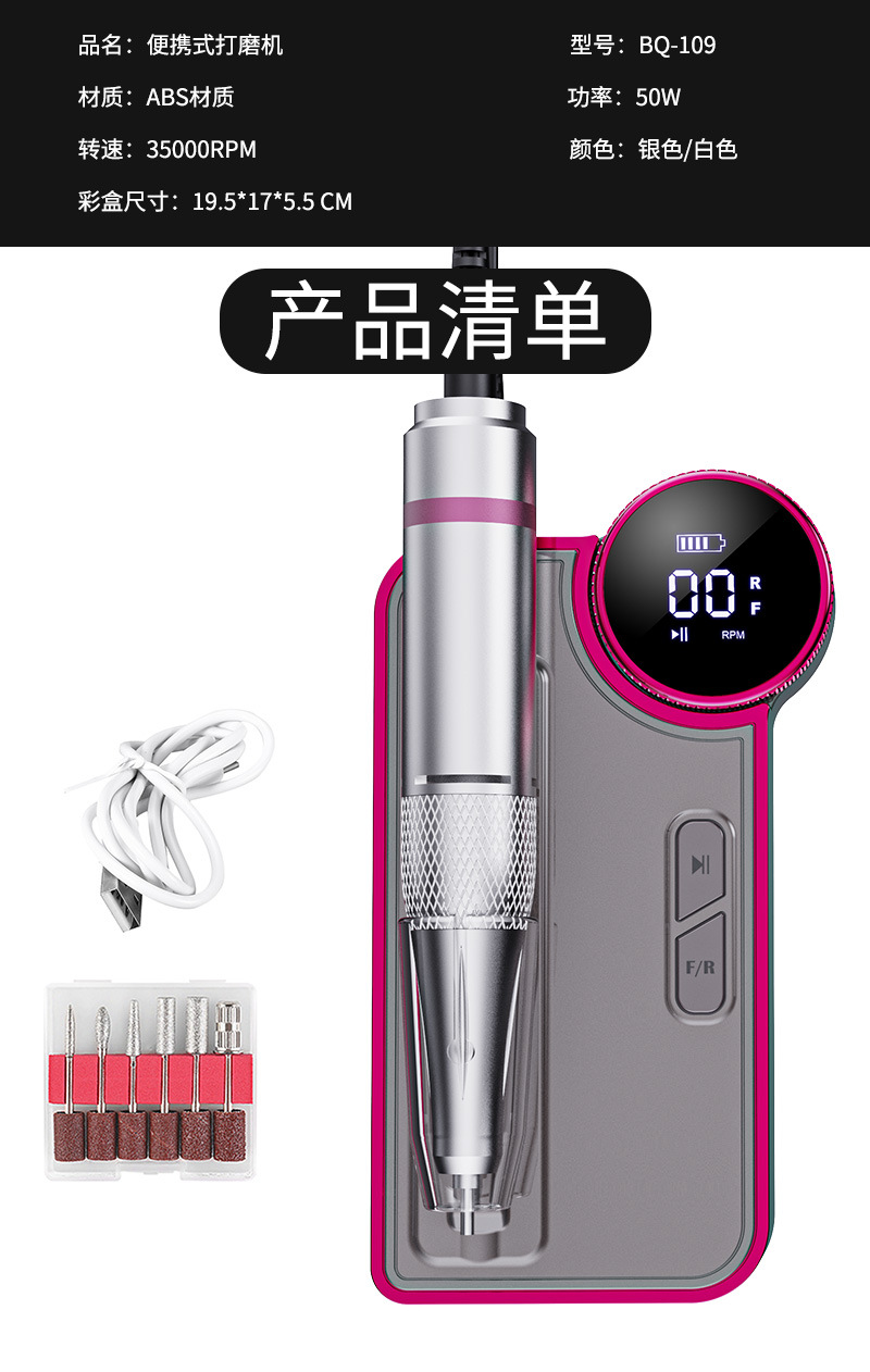 调速便携式美甲打磨机专业卸美甲指甲抛光器家用低音高速35000RPM