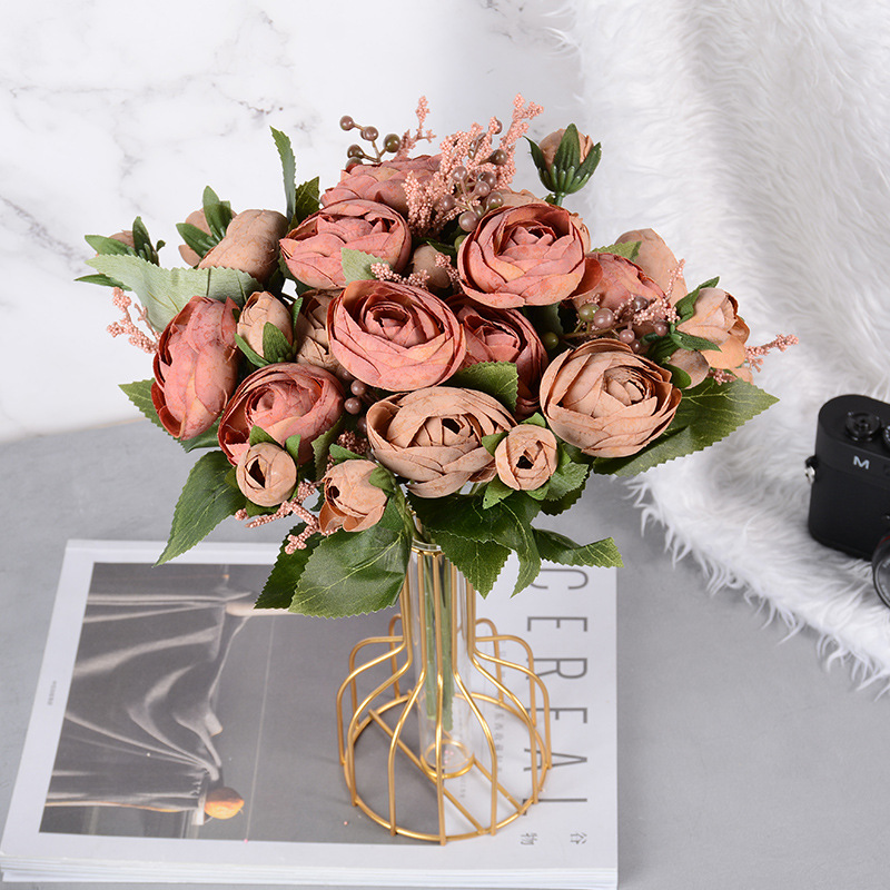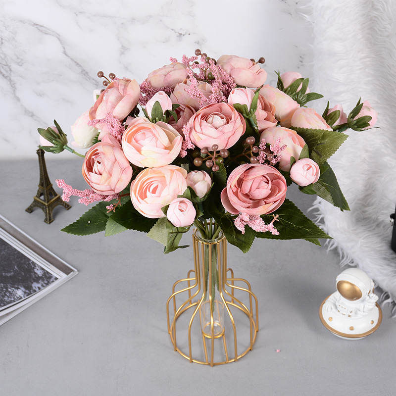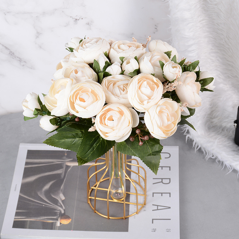 欧式仿真5头雪花大茶苞花婚庆装饰花束绢花塑料假花摆件仿真玫瑰