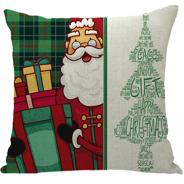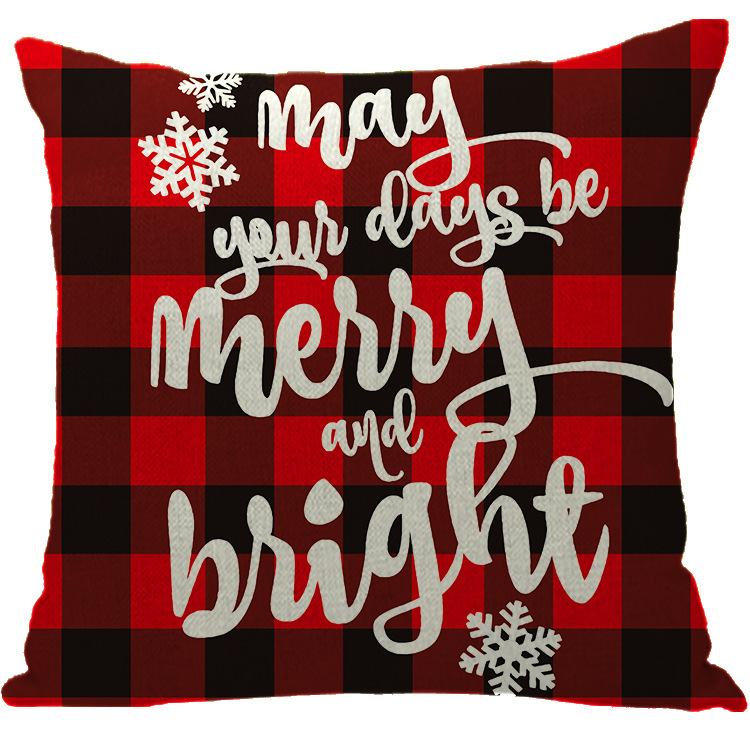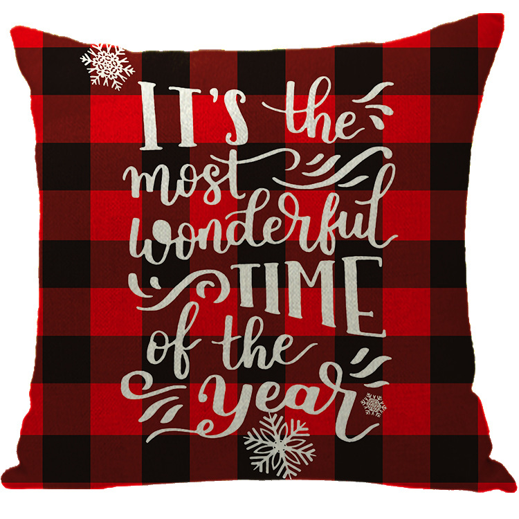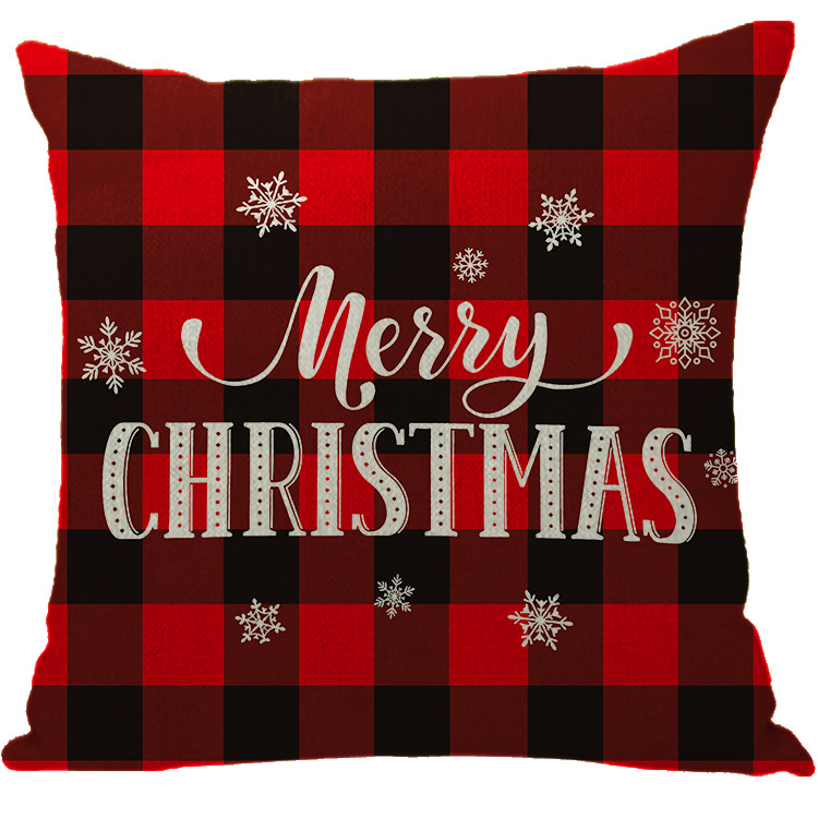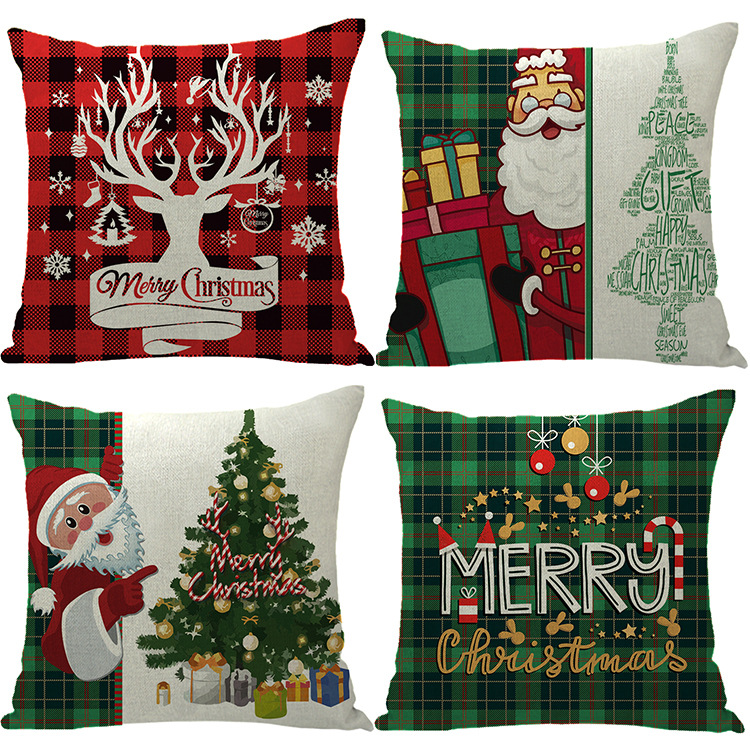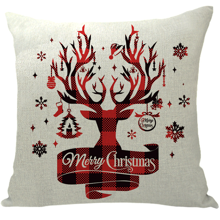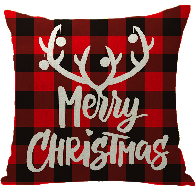 跨境亚马逊家居新款圣诞抱枕套红色方格圣诞靠垫圣诞老人印花靠枕