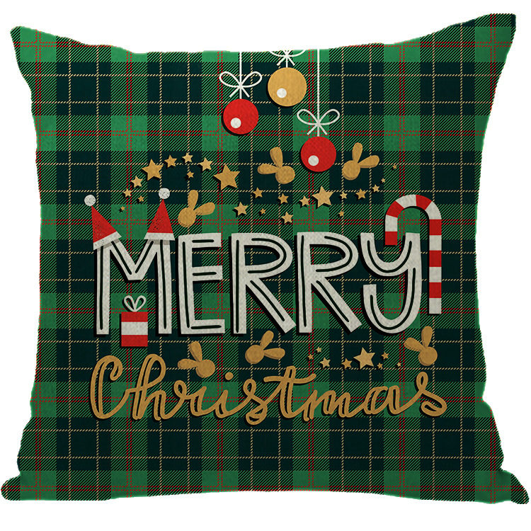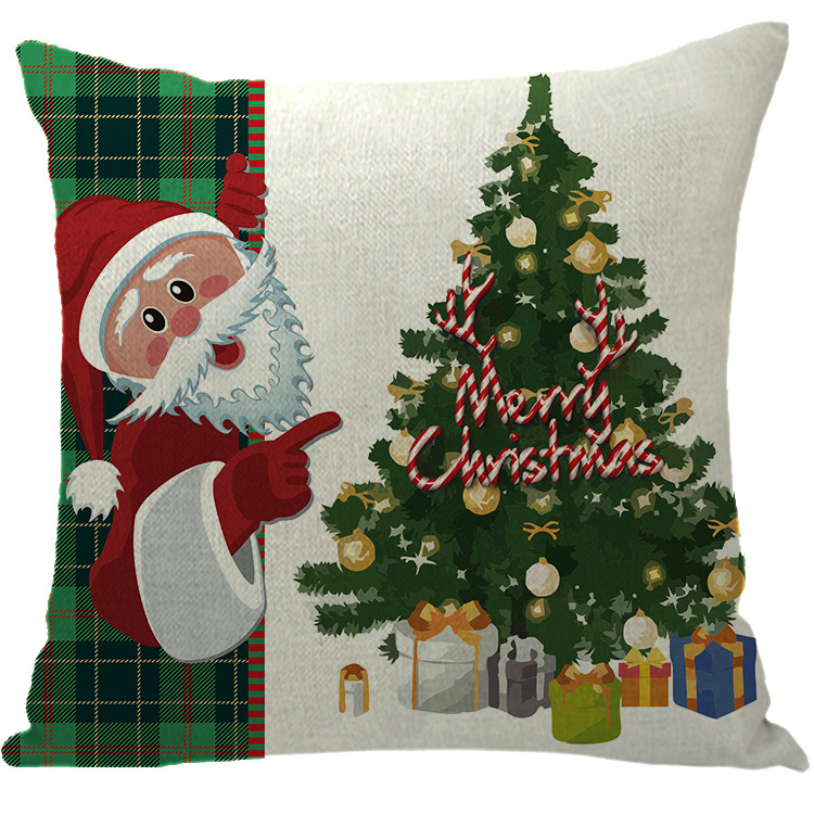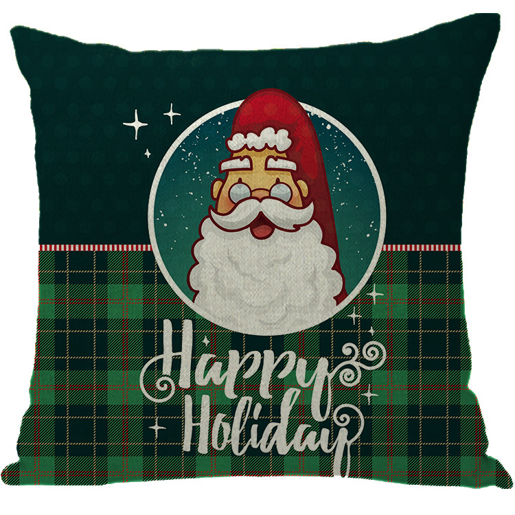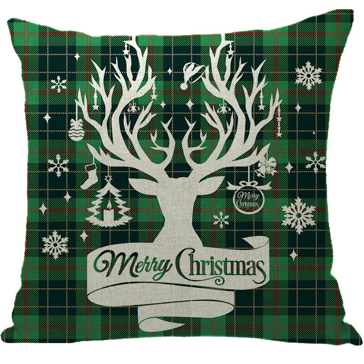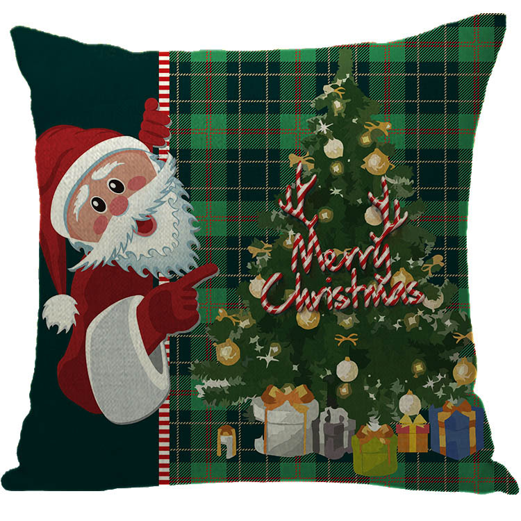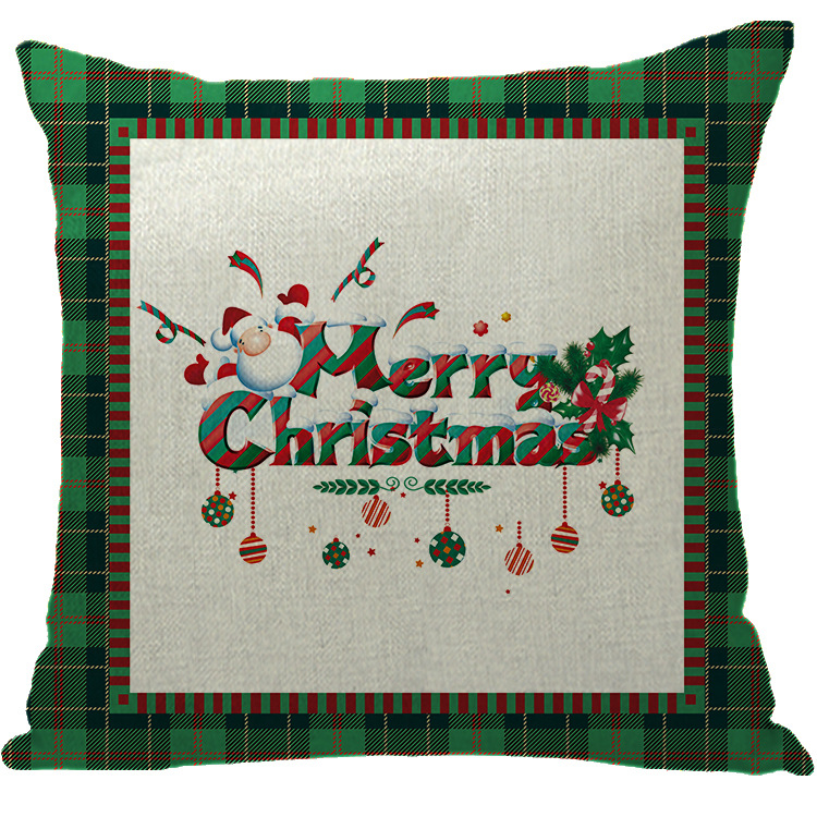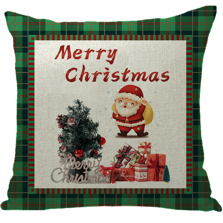 跨境亚马逊家居新款圣诞抱枕套红色方格圣诞靠垫圣诞老人印花靠枕