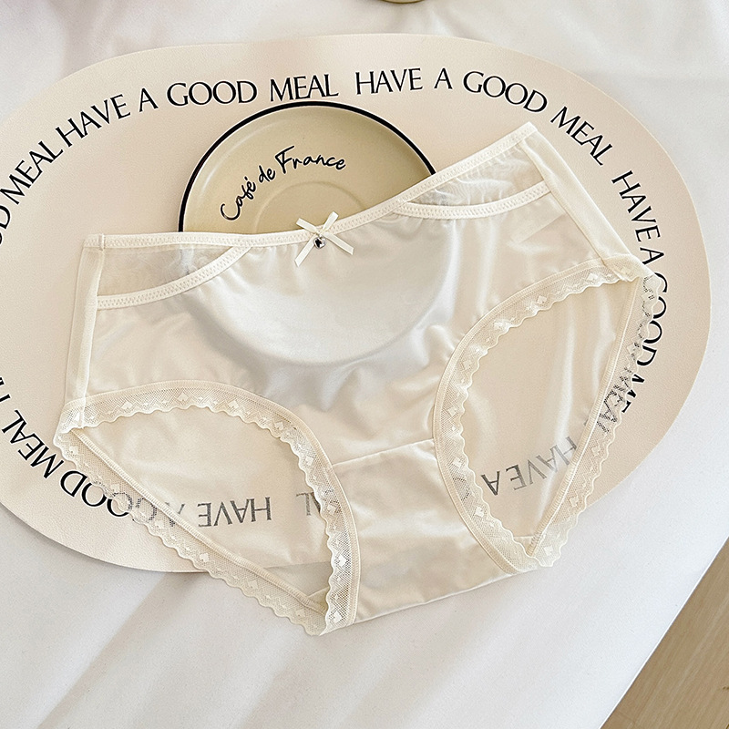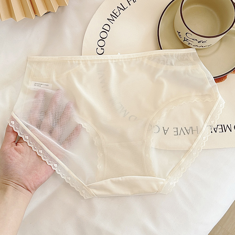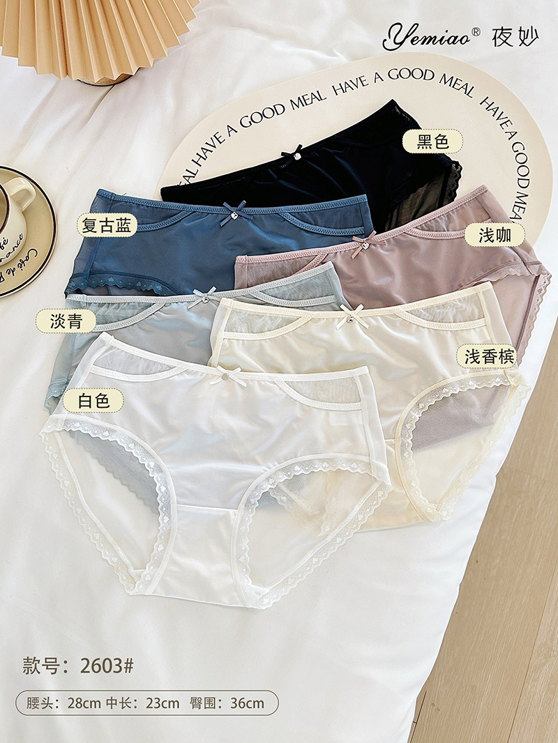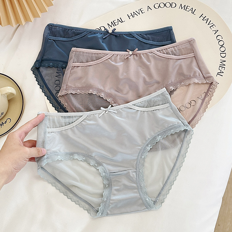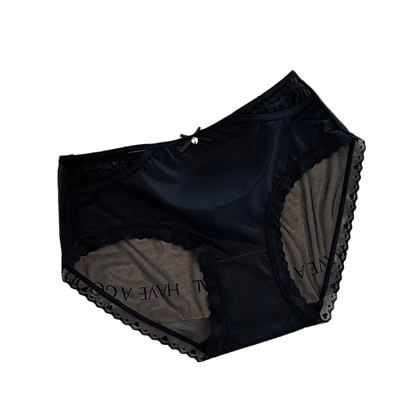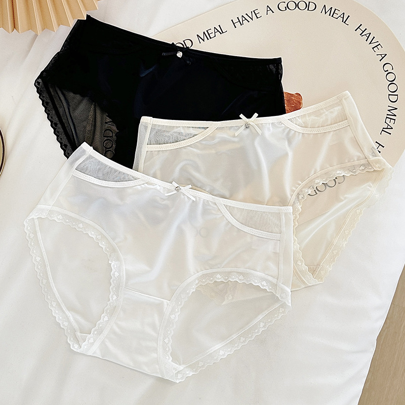 冰丝运动女士内裤镂空性感透明高弹包臀透气奢华缎面中高腰内裤女
