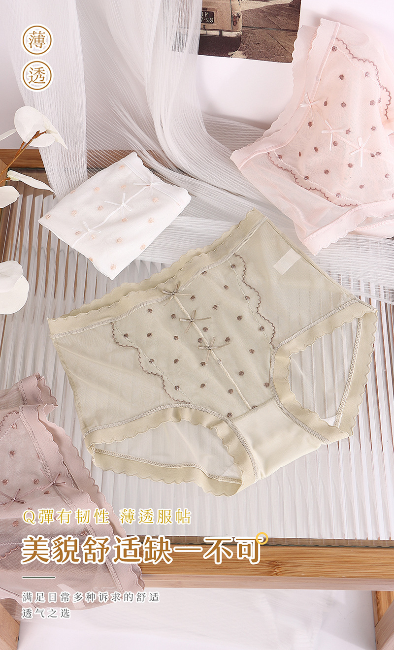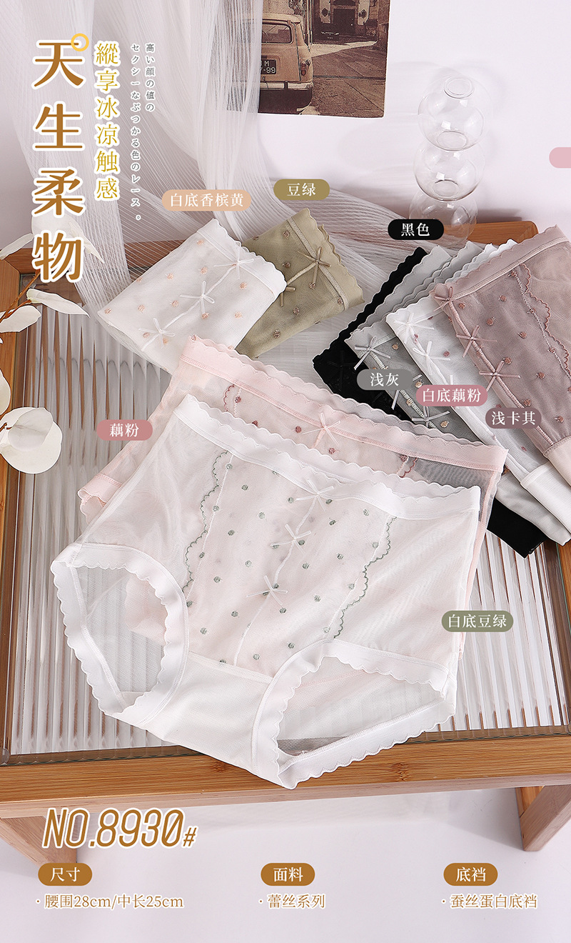 新款无痕中高腰蕾丝性感女士内裤蚕丝蛋白裆女式内裤纯欲女生内裤