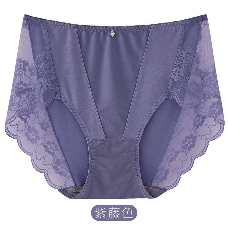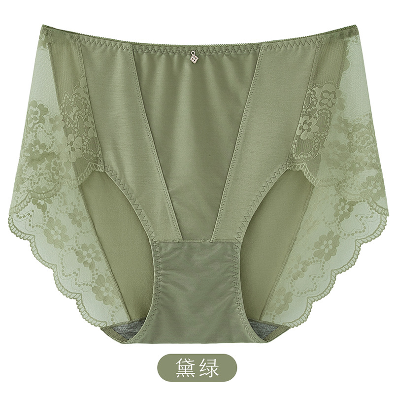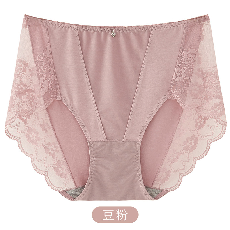 加大码莫代尔高腰性感蕾丝边女式内裤60支柔软高弹包臀无痕三角裤