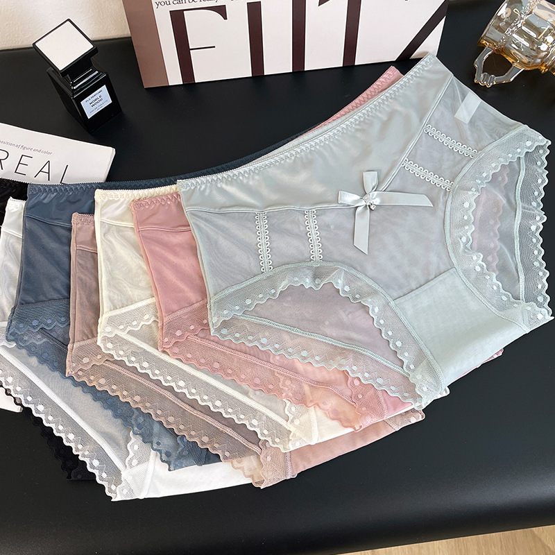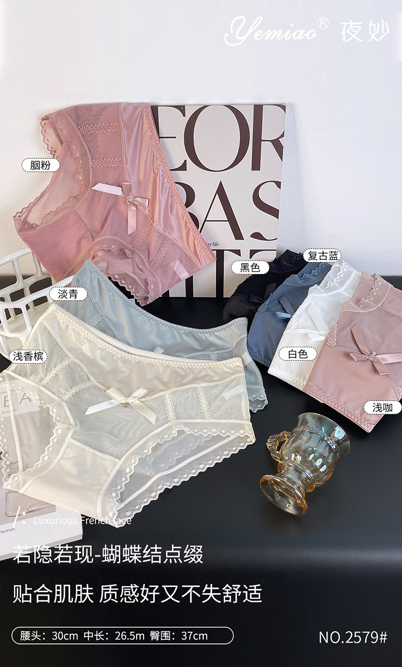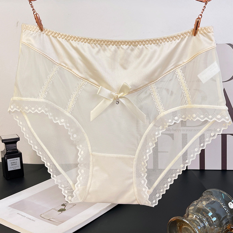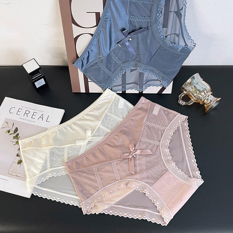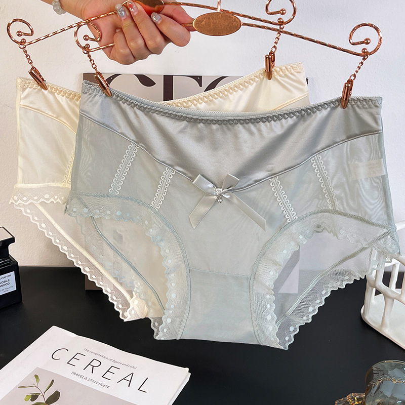 性感女内裤轻薄无痕拼接缎面奢华中腰女式裤头纯棉裆高弹三角裤头