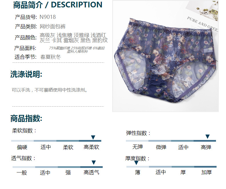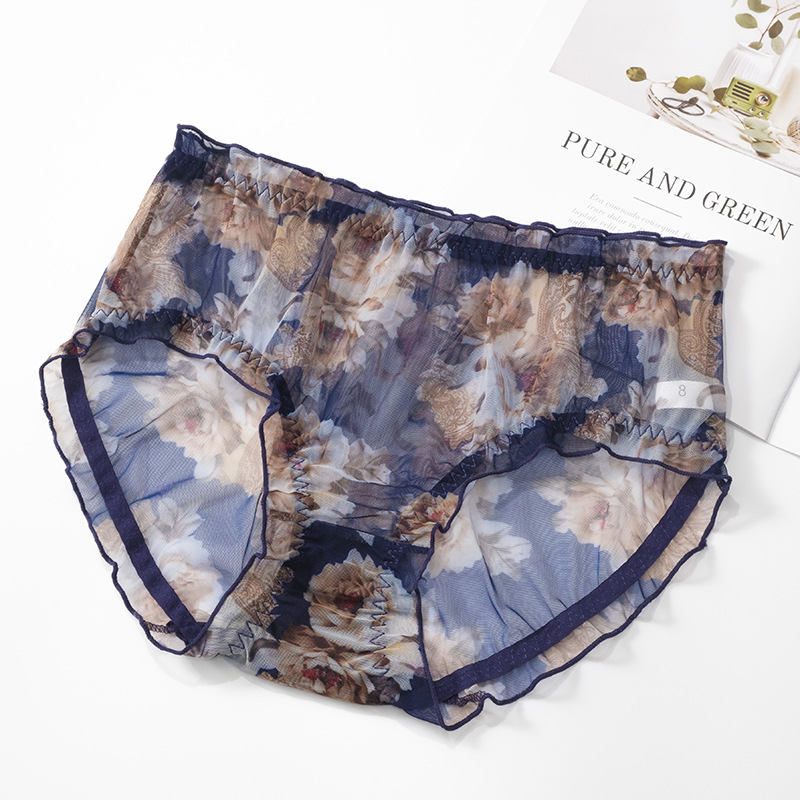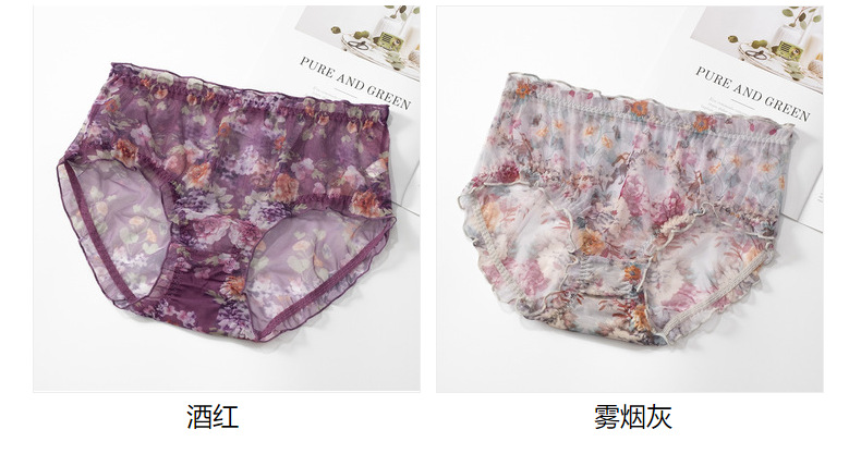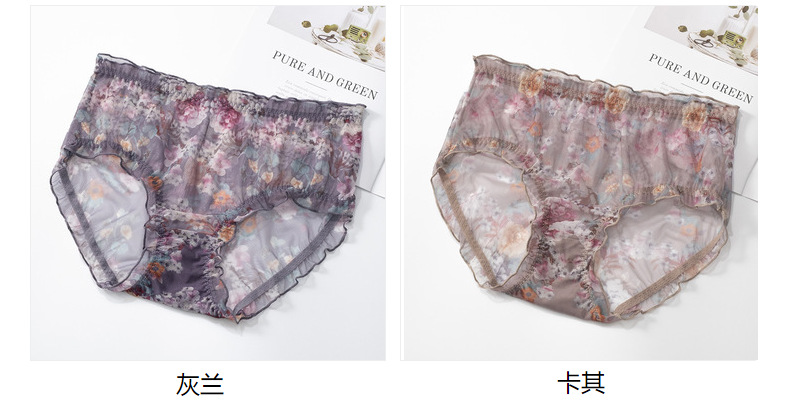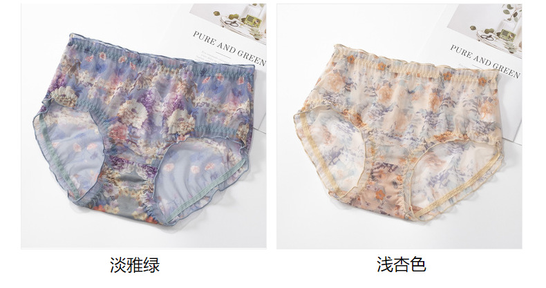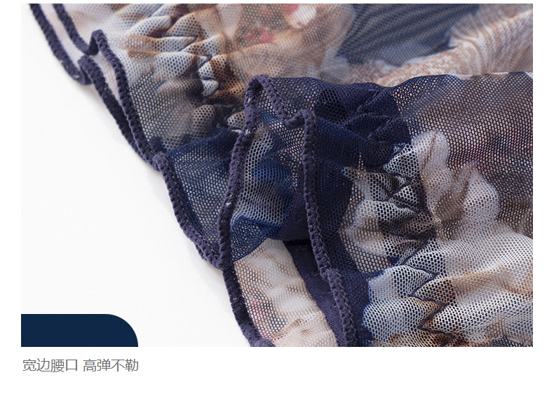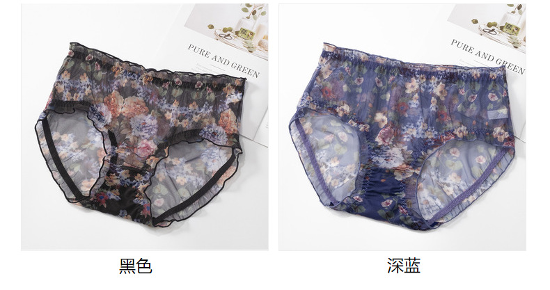蕾丝内裤女中腰性感轻薄网纱无痕棉档胖mm大码女士碎花三角裤头
