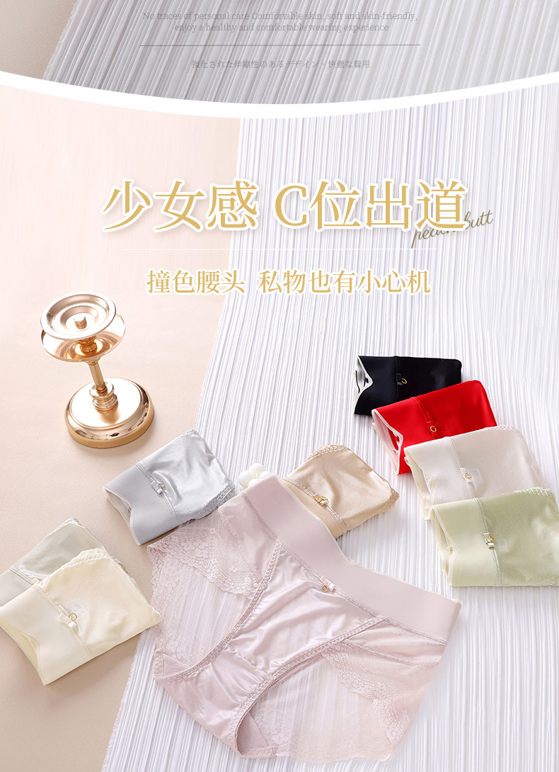 冰丝内裤女无痕性感薄款透气纯棉裆提臀性感中腰小平角高弹内裤女