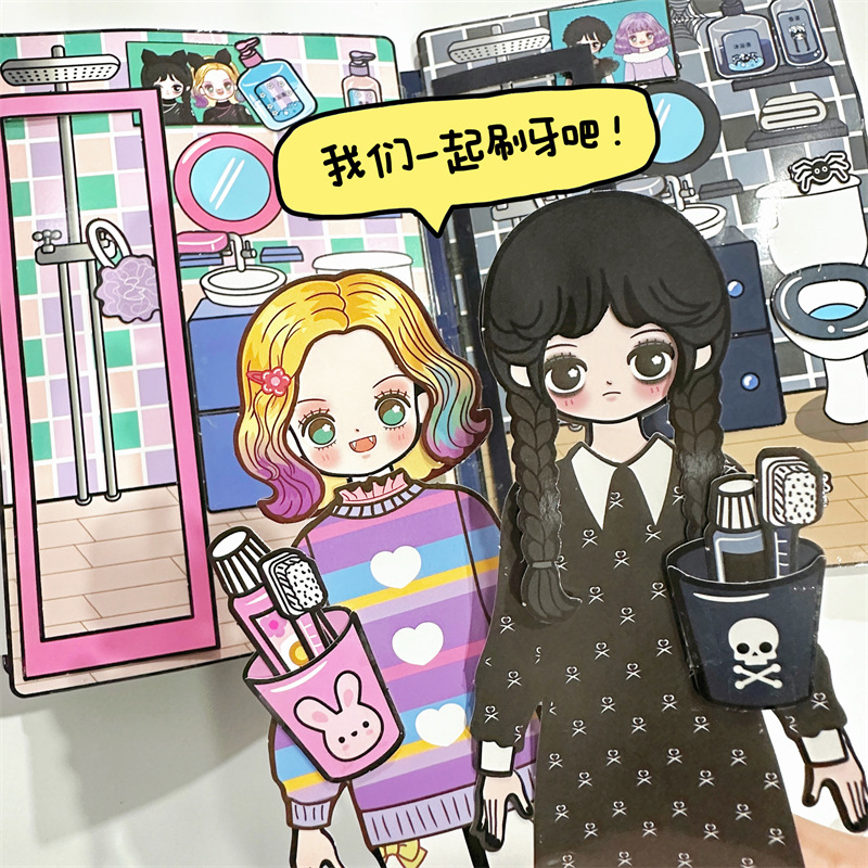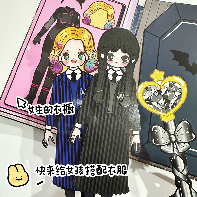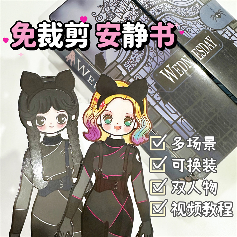 黑色星期三换装免裁剪安静书diy桌面手工亲子互动迷你屋材料包