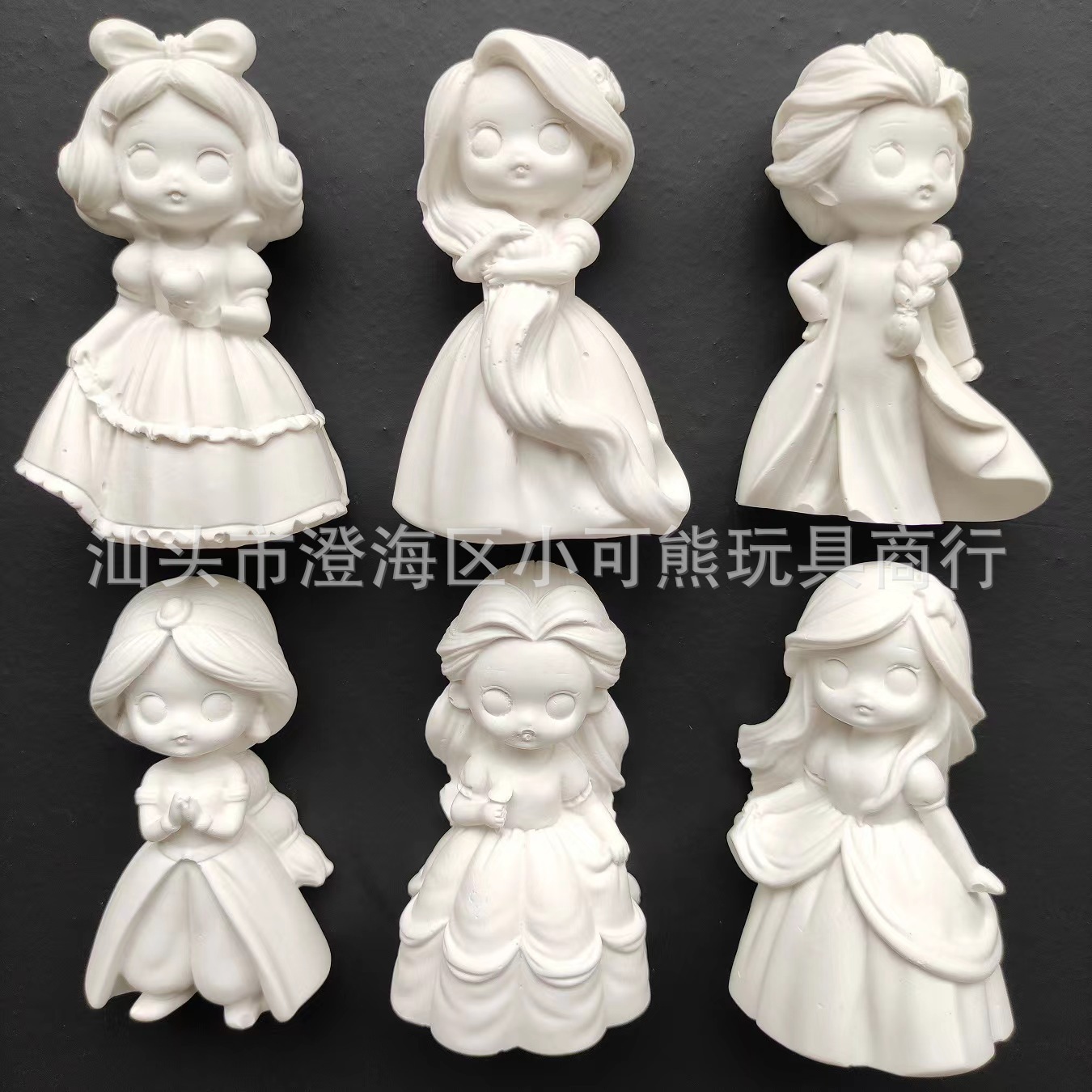 DIY彩绘石膏卡通公主娃娃小号白胚涂鸦涂色手工在逃公仔工厂批发