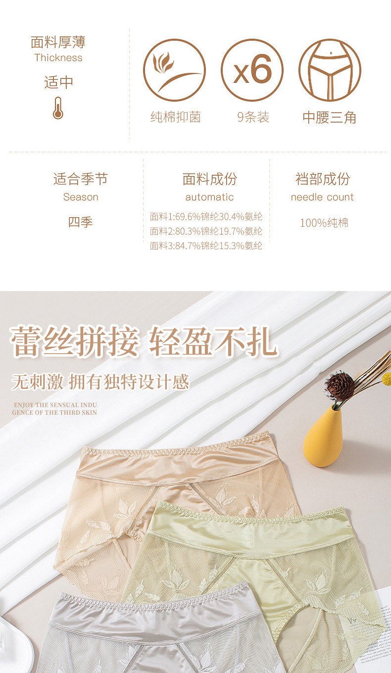 高腰收腹大码蕾丝内裤女轻薄提臀无痕透气纯棉裆性感女士内裤批发