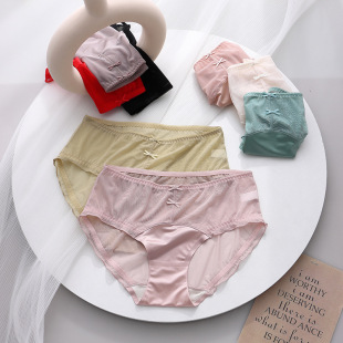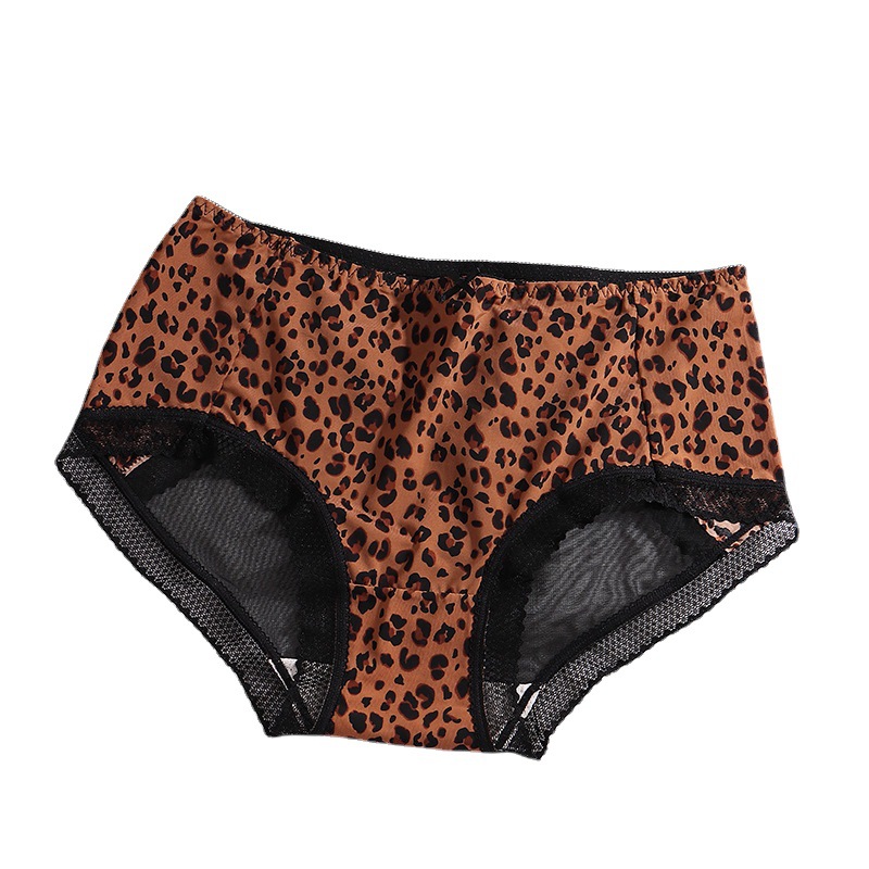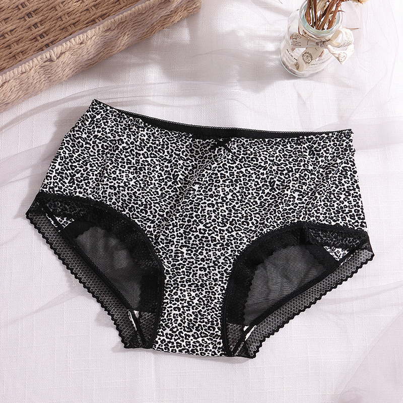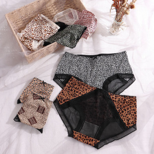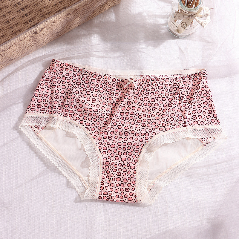 豹纹内裤女清凉性感蕾丝透明火辣中腰三角裤头蝴蝶结女生内裤