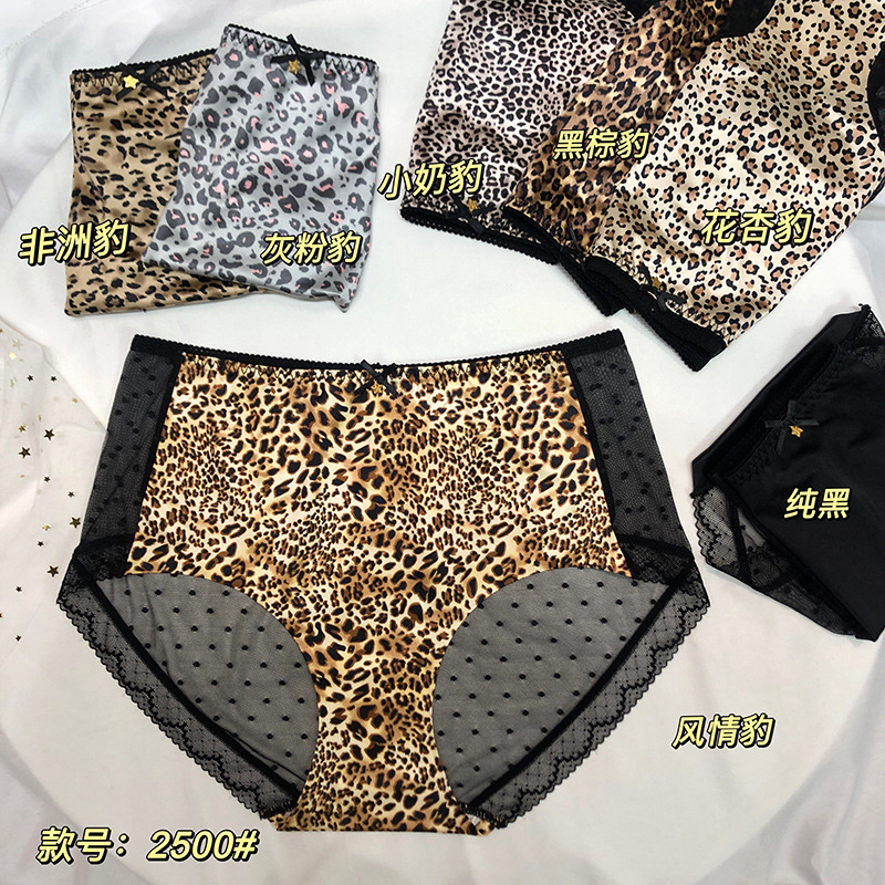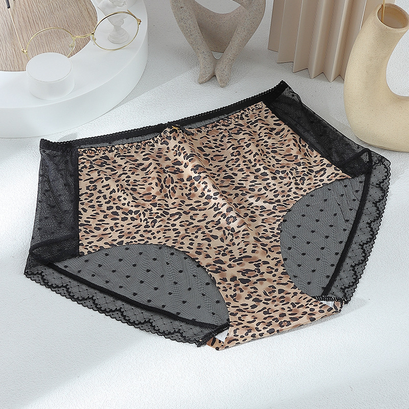 大码豹纹内裤女火辣性感透明中腰轻薄舒适高弹三角裤头纯棉裆短裤