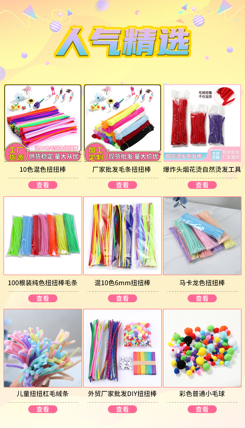 马卡龙混色毛条扭扭棒 DIY手工材料毛绒恐龙毛根儿童扭扭杠毛绒条