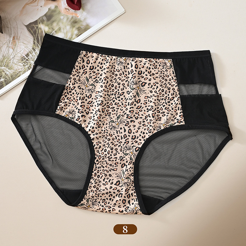 豹纹牛奶丝大码女士内裤时尚性感花纹棉档胖mm高弹力三角裤头