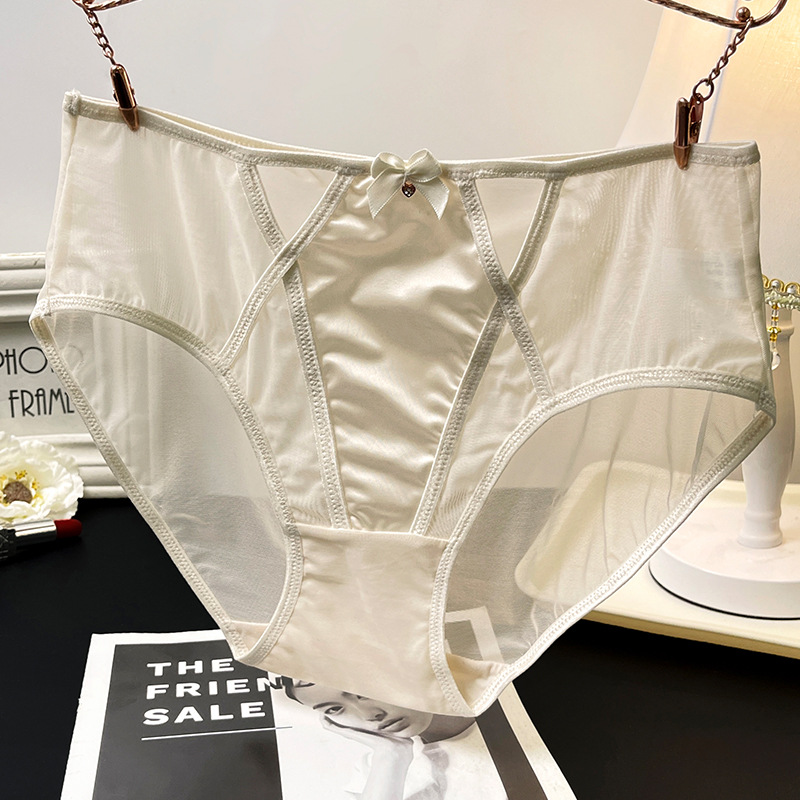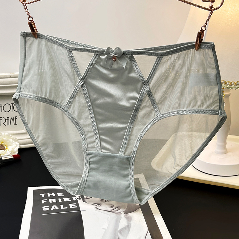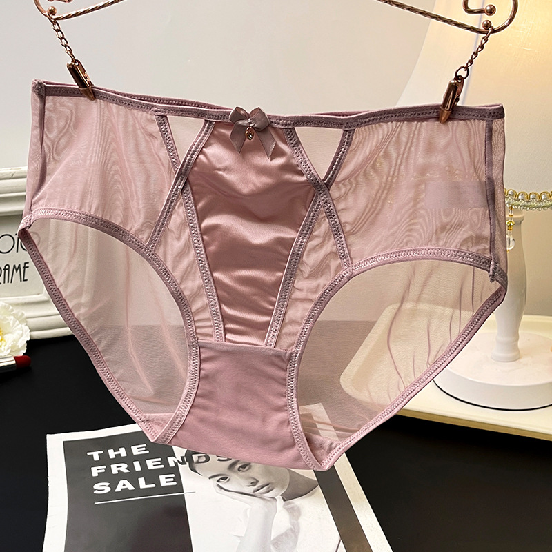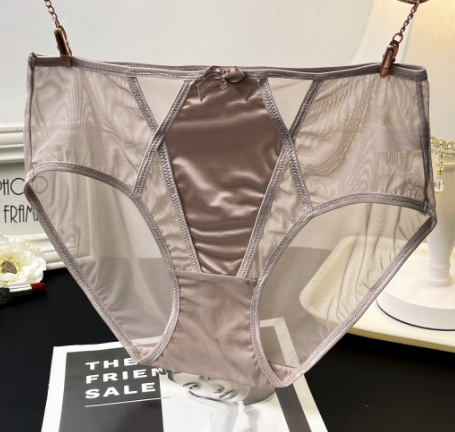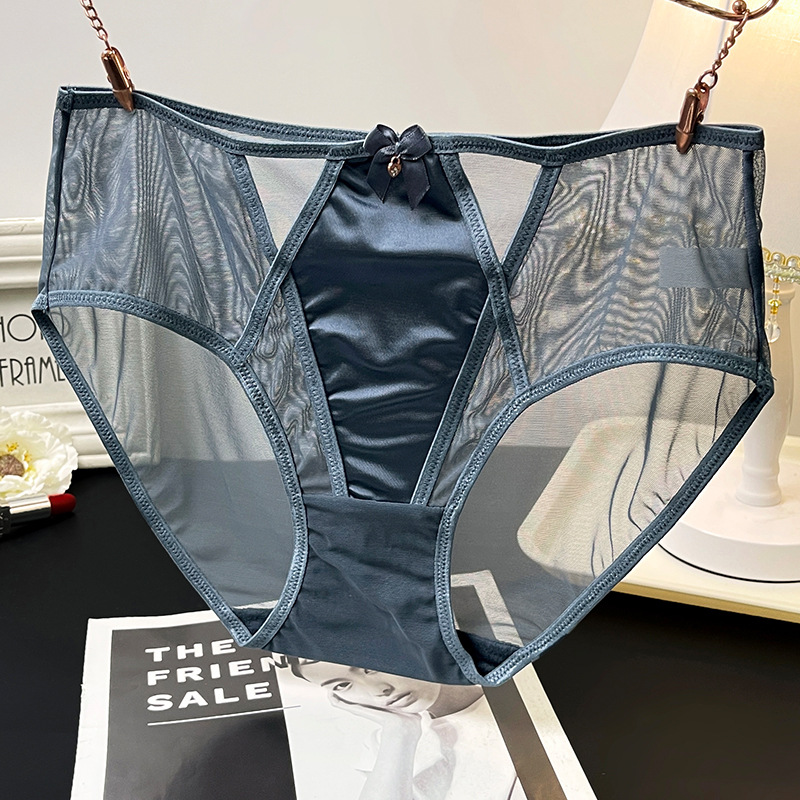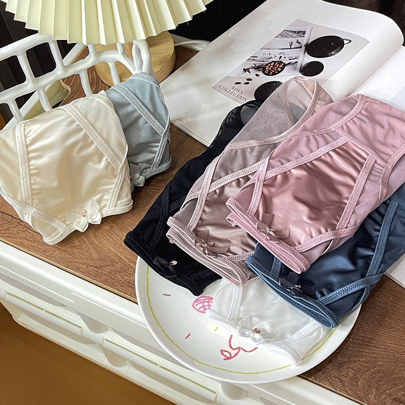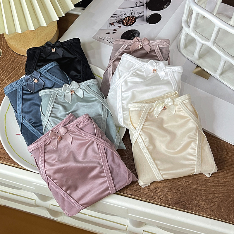 高弹性感女内裤拼接缎面奢华中低腰透气纯棉裆轻薄无痕少女三角裤