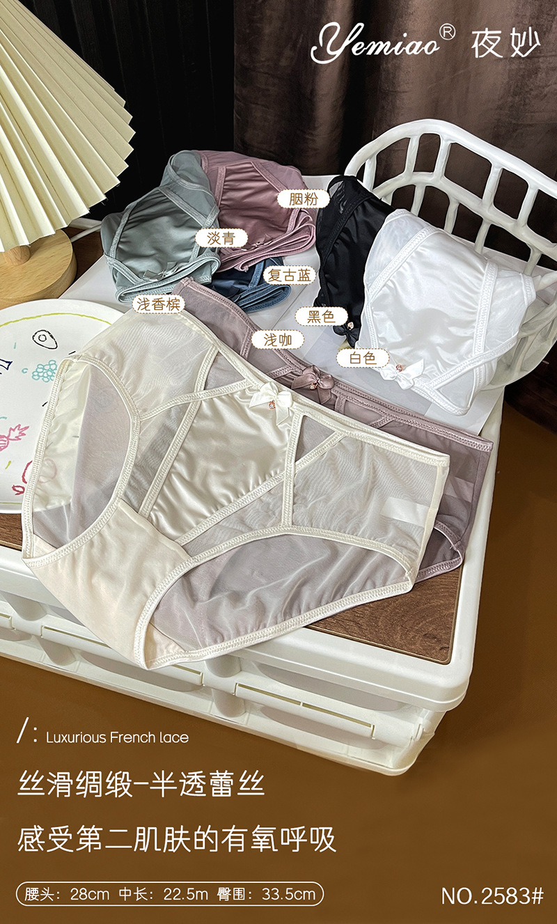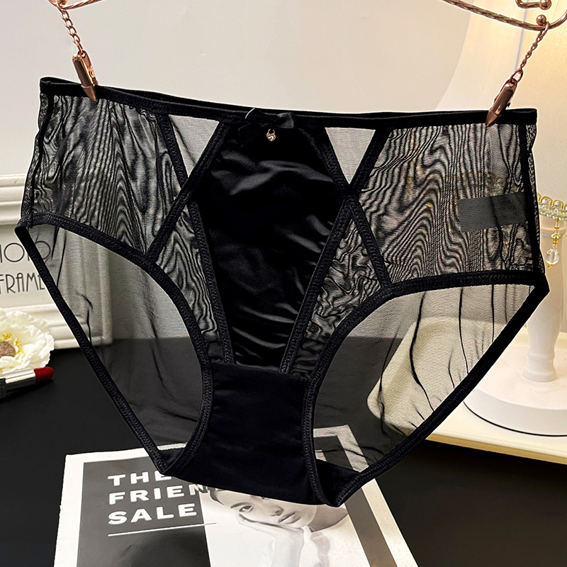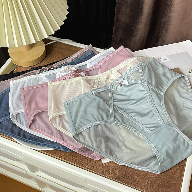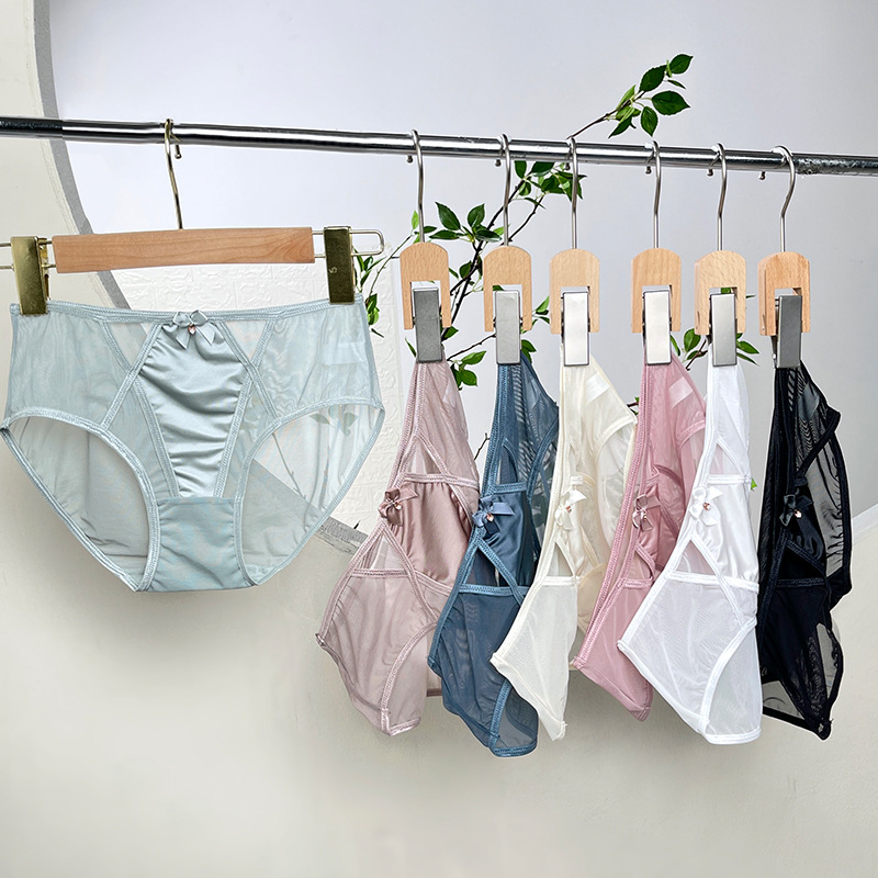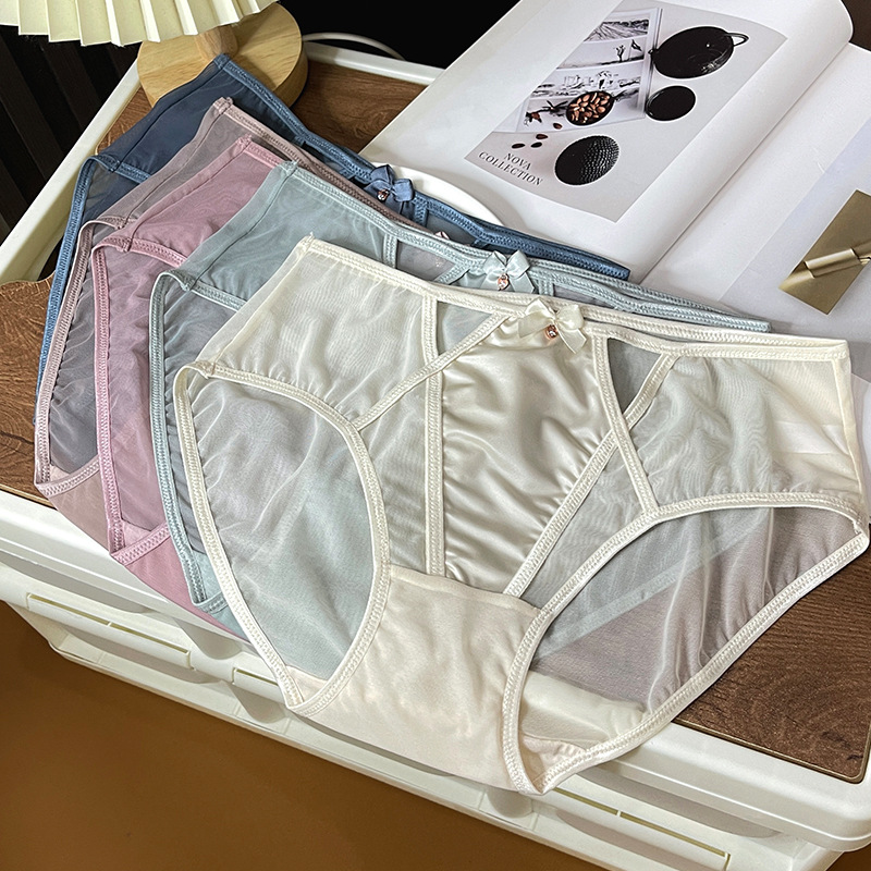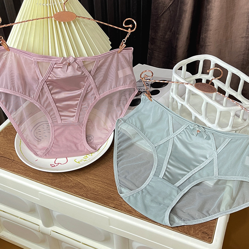 高弹性感女内裤拼接缎面奢华中低腰透气纯棉裆轻薄无痕少女三角裤