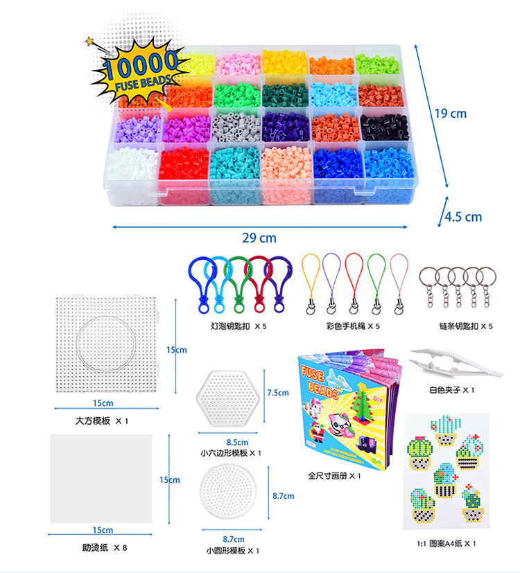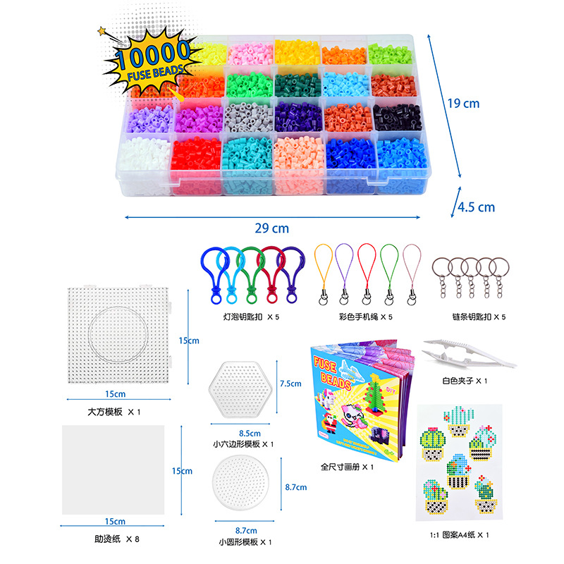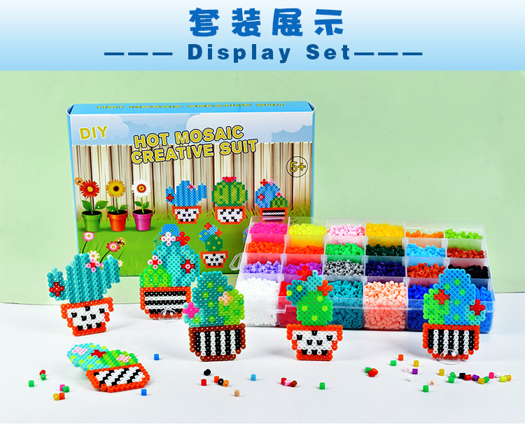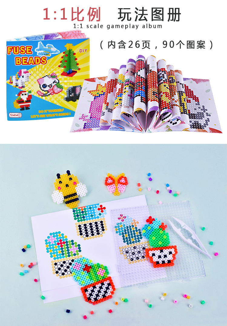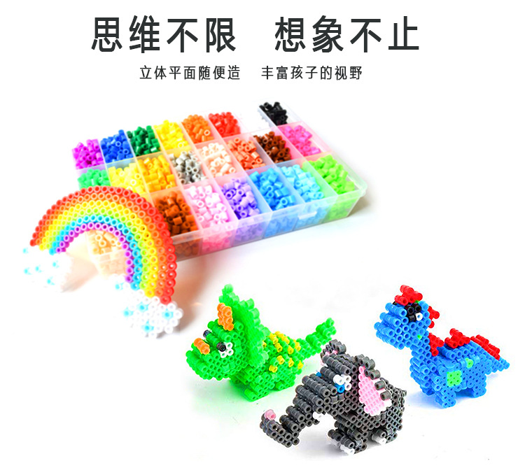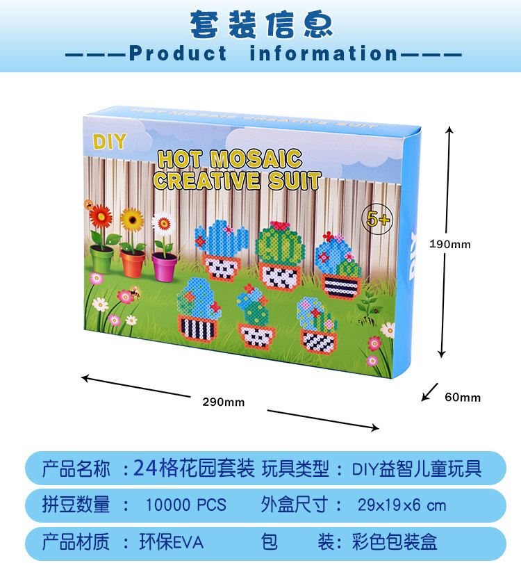 手工diy玩具拼豆豆24色花园套装拼豆拼图挂件趣味烫珠拼豆豆套装