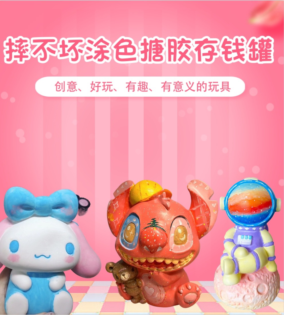 搪胶彩绘非石膏娃娃白胚大号涂色存钱罐儿童手工diy摆摊玩具批发