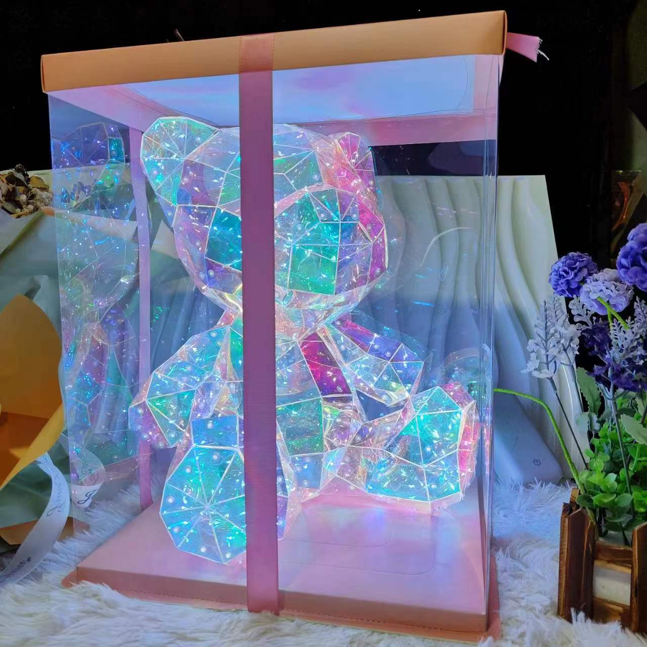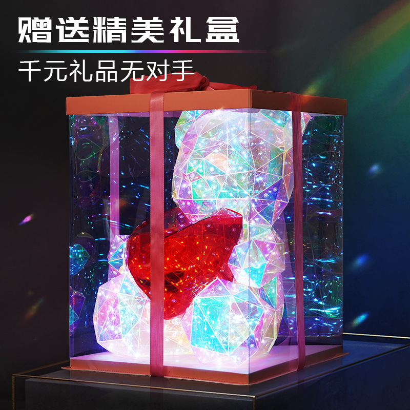 跨境创意情人节送女友礼物幻彩发光小熊套装礼物家居装饰摆件礼品
