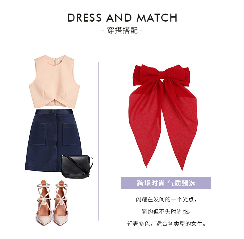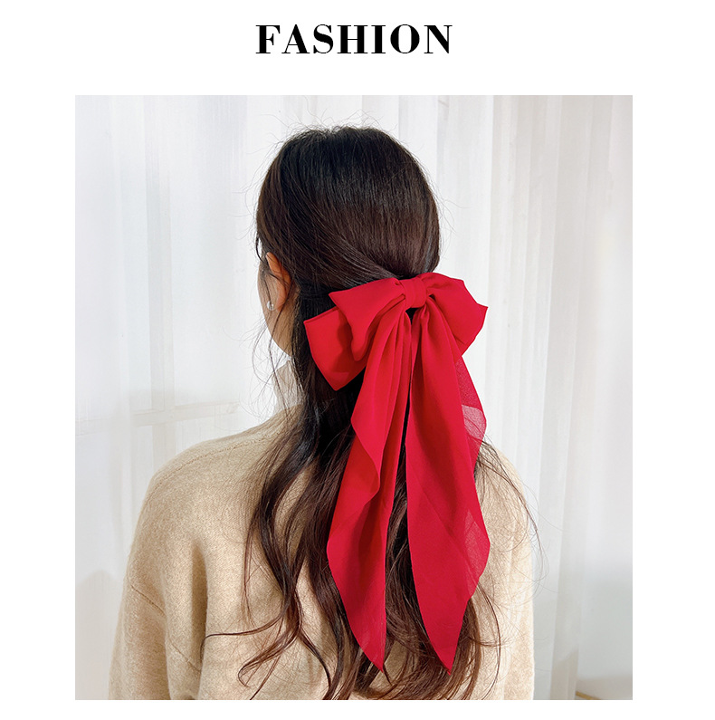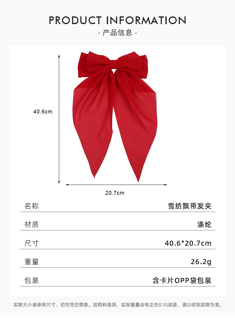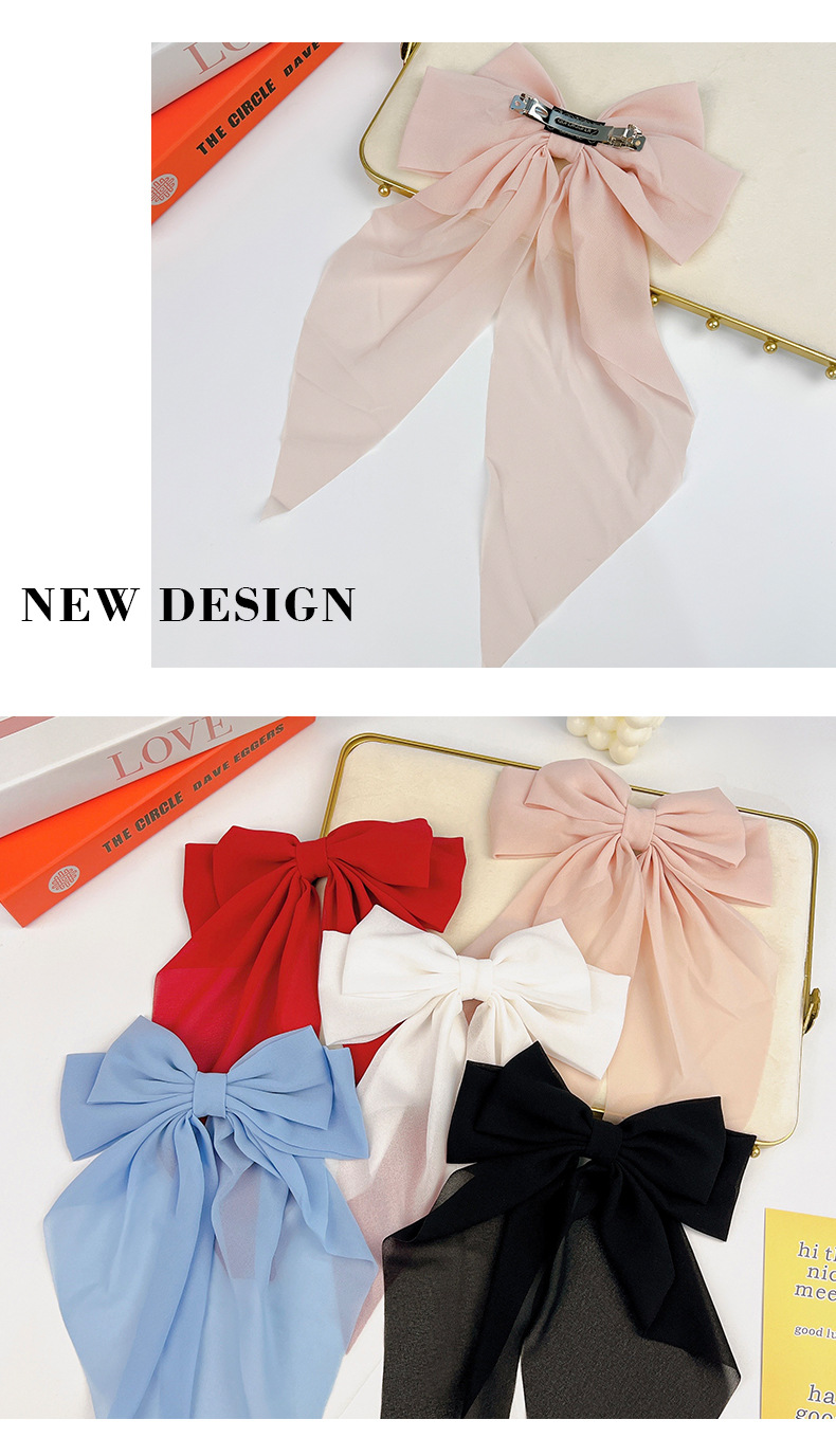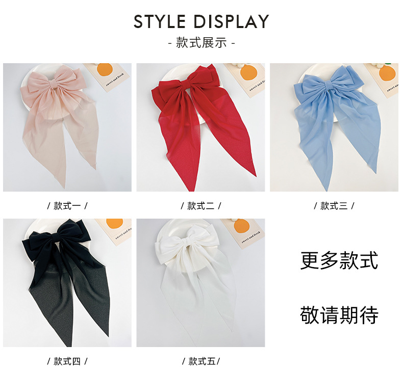 大蝴蝶结头饰批发女气质网红雪纺飘带发夹后脑勺发夹弹簧发卡发饰