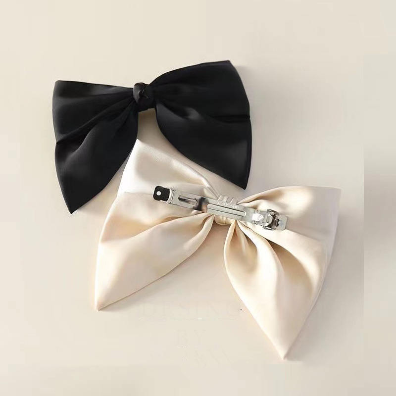 蝴蝶结发夹高级感缎面法式发饰发夹后脑勺黑色蝴蝶结弹簧夹发饰