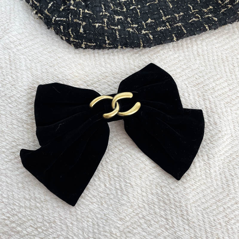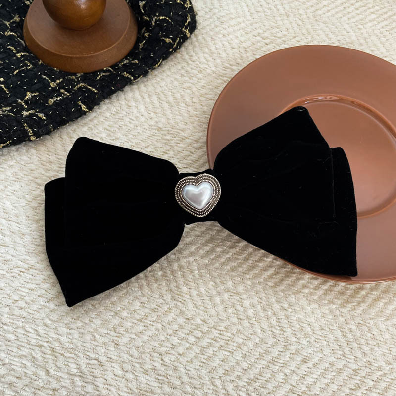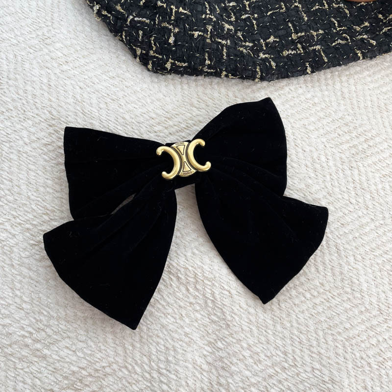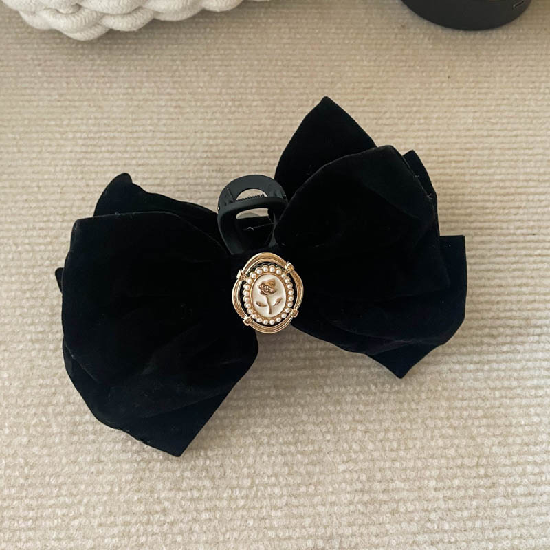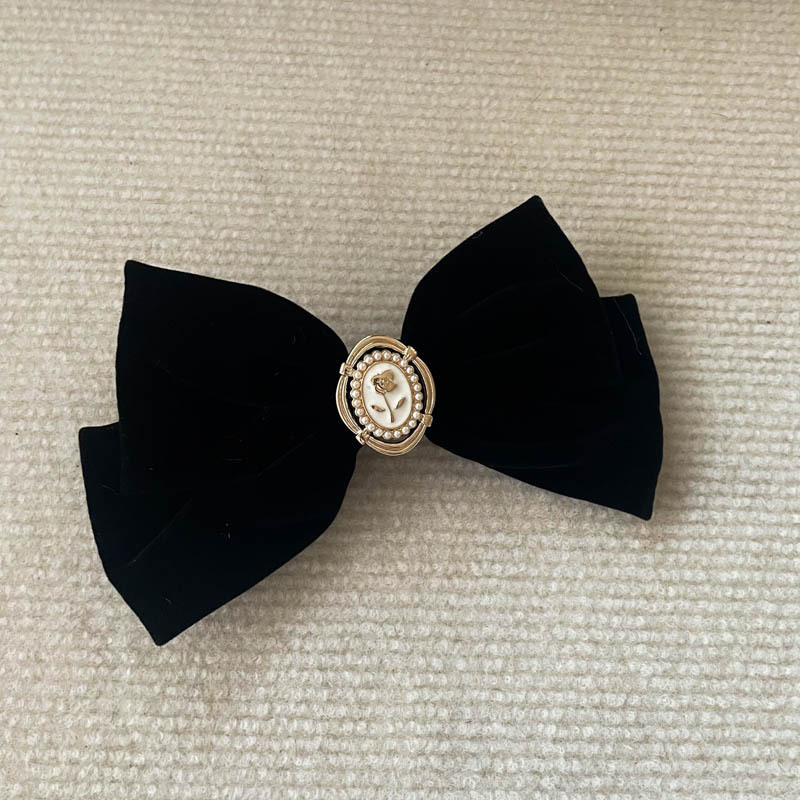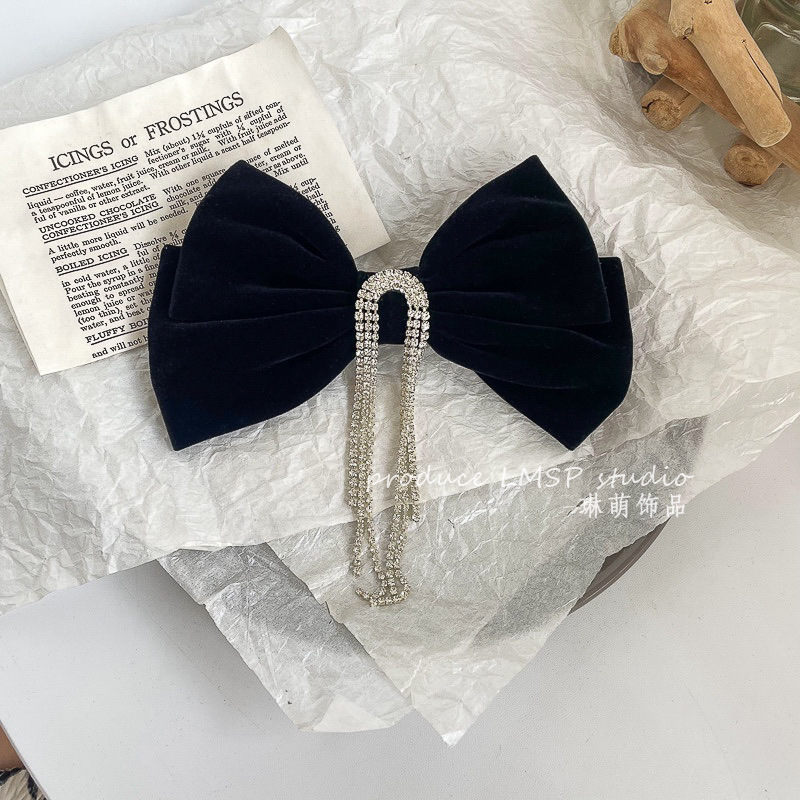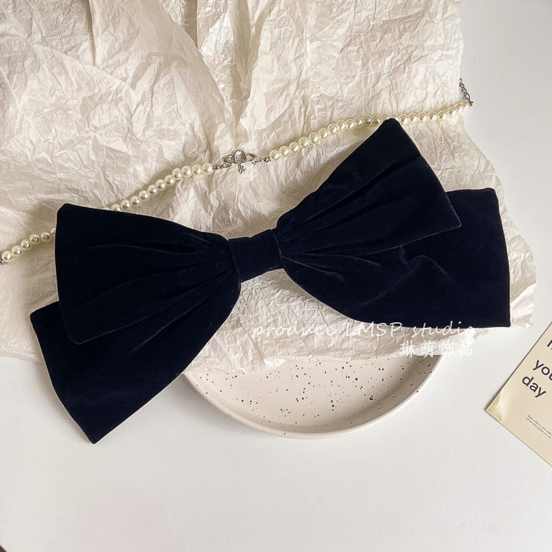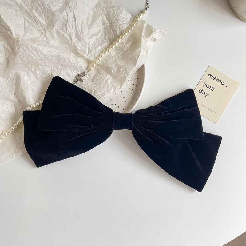 新年超大硬挺黑色丝绒蝴蝶结发夹发饰头饰高品质后脑勺弹簧夹冬
