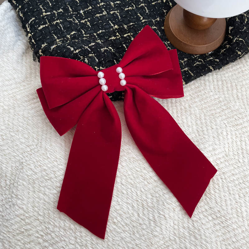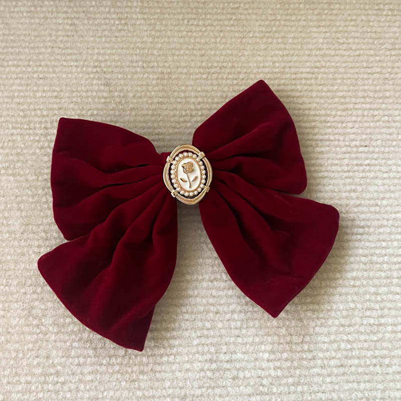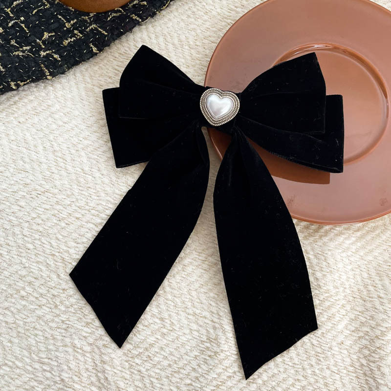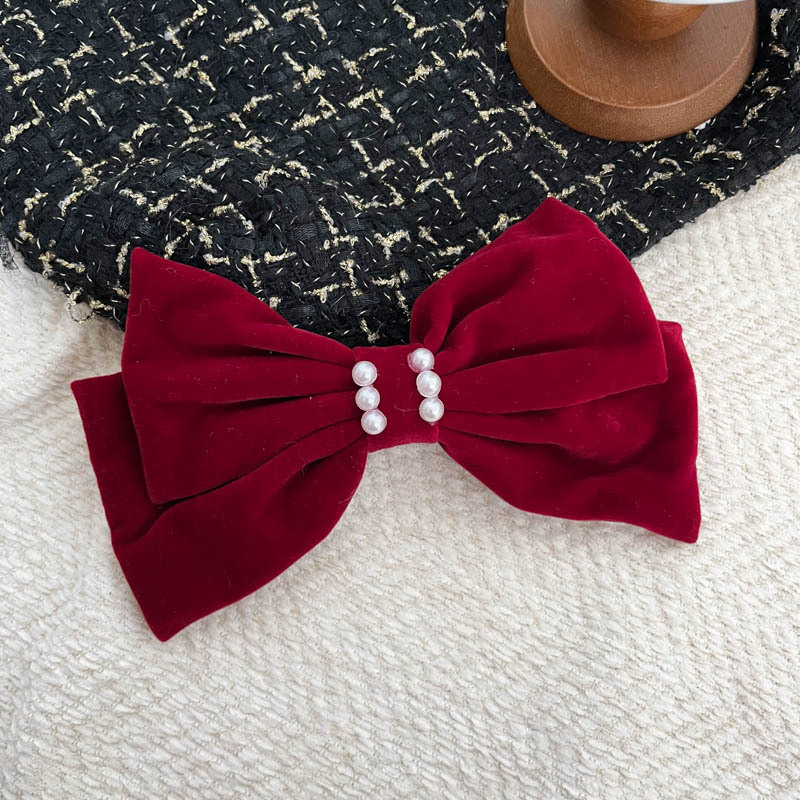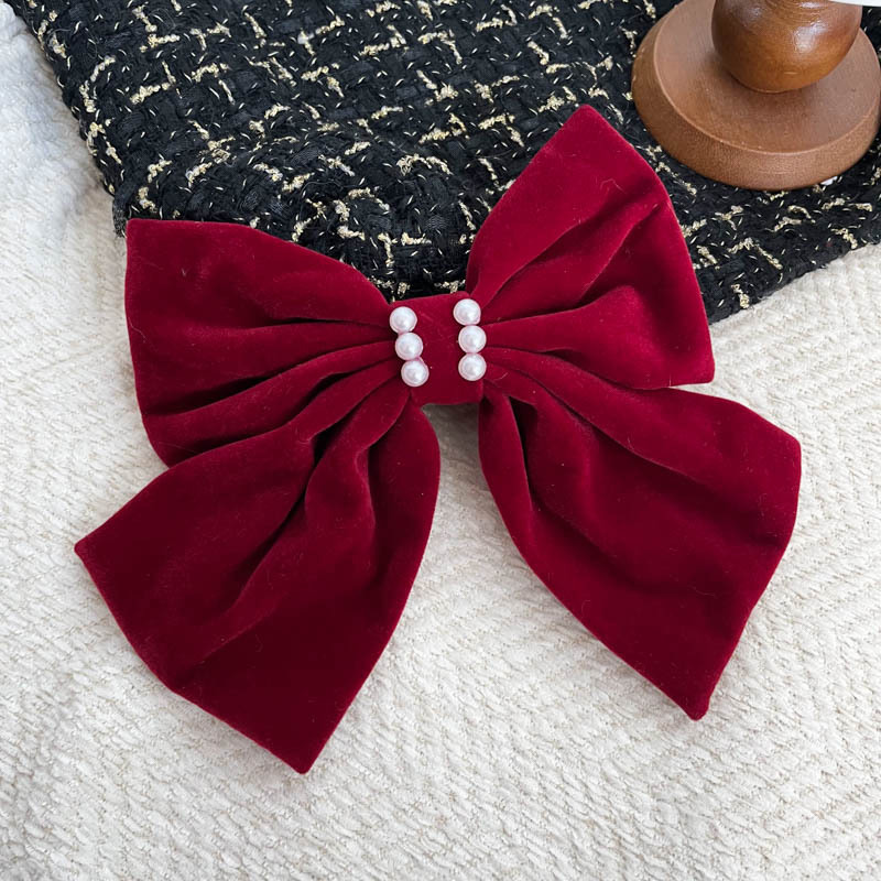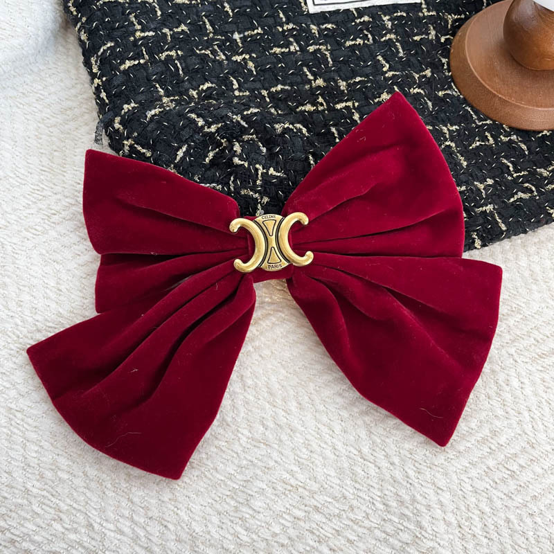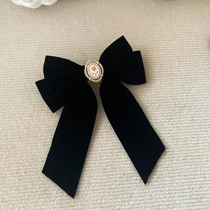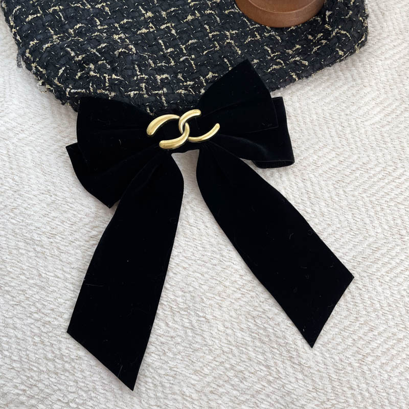 新年超大硬挺黑色丝绒蝴蝶结发夹发饰头饰高品质后脑勺弹簧夹冬