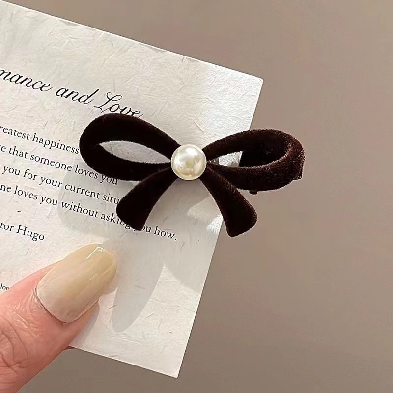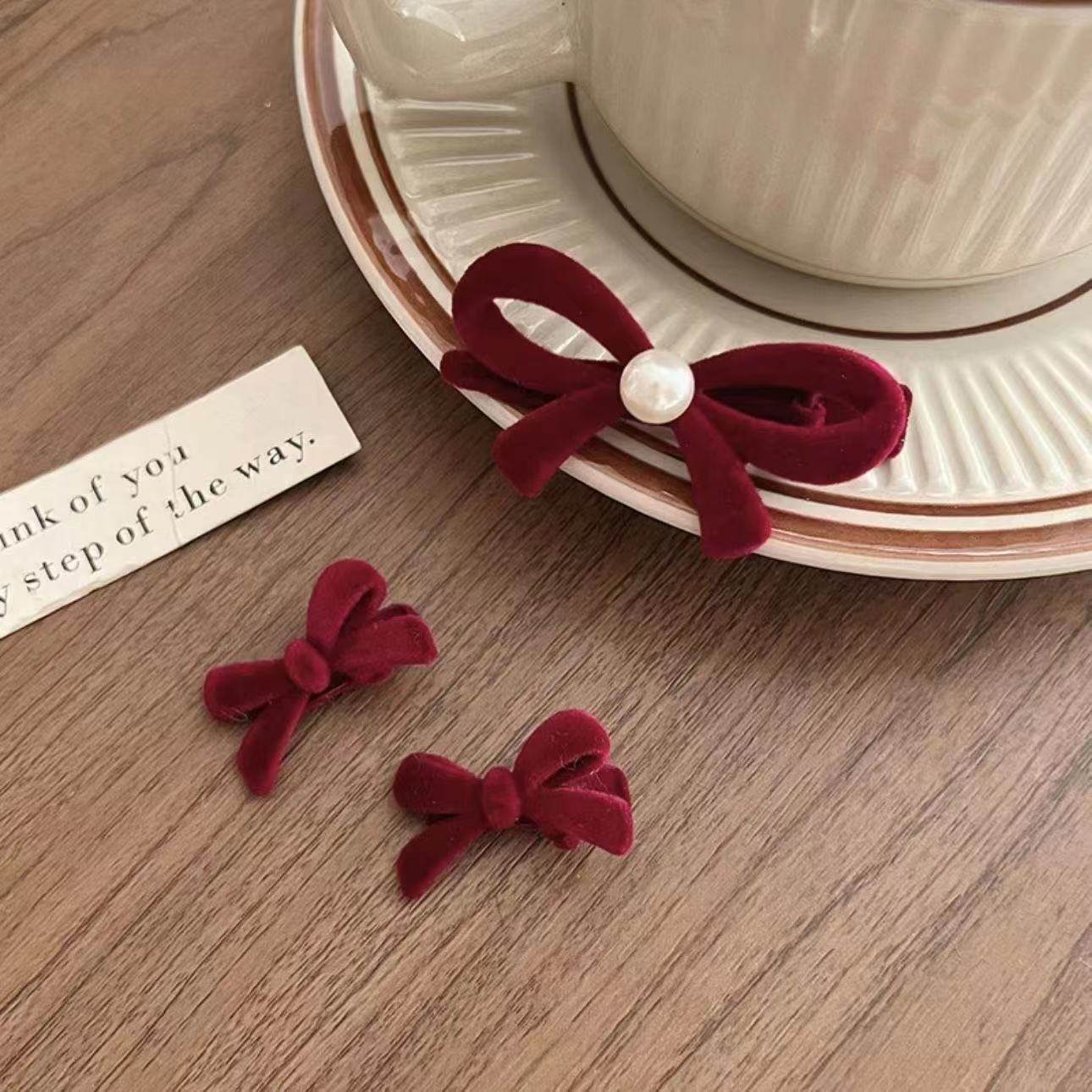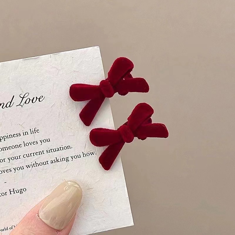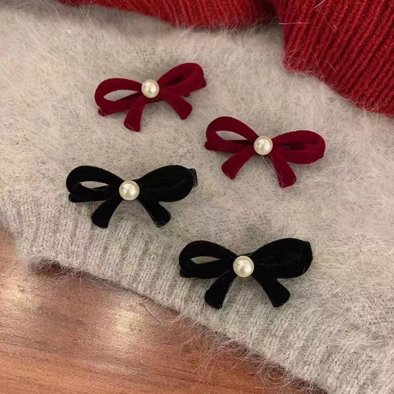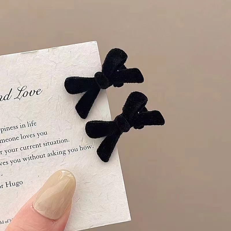 丝绒蝴蝶结小发夹边夹侧边秋冬刘海夹女前额鸭嘴夹子头饰2023新款