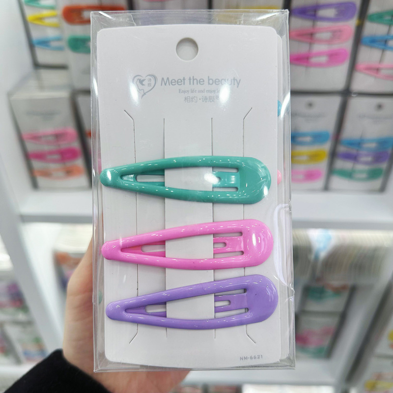 跨境韩版黑色泫雅彩色一字夹滴油侧边刘海夹磨砂BB夹卡装批发两元