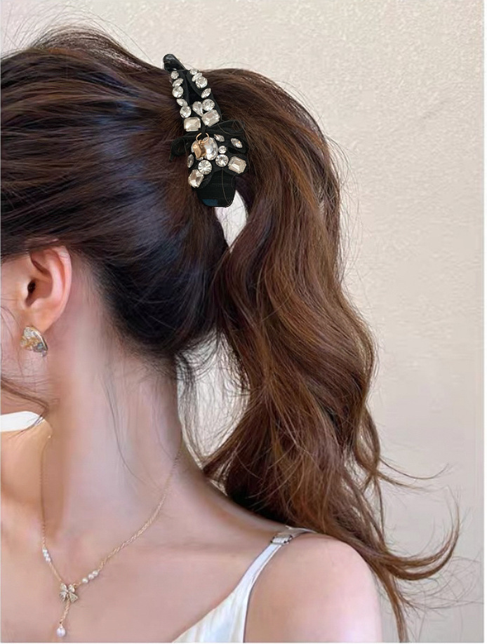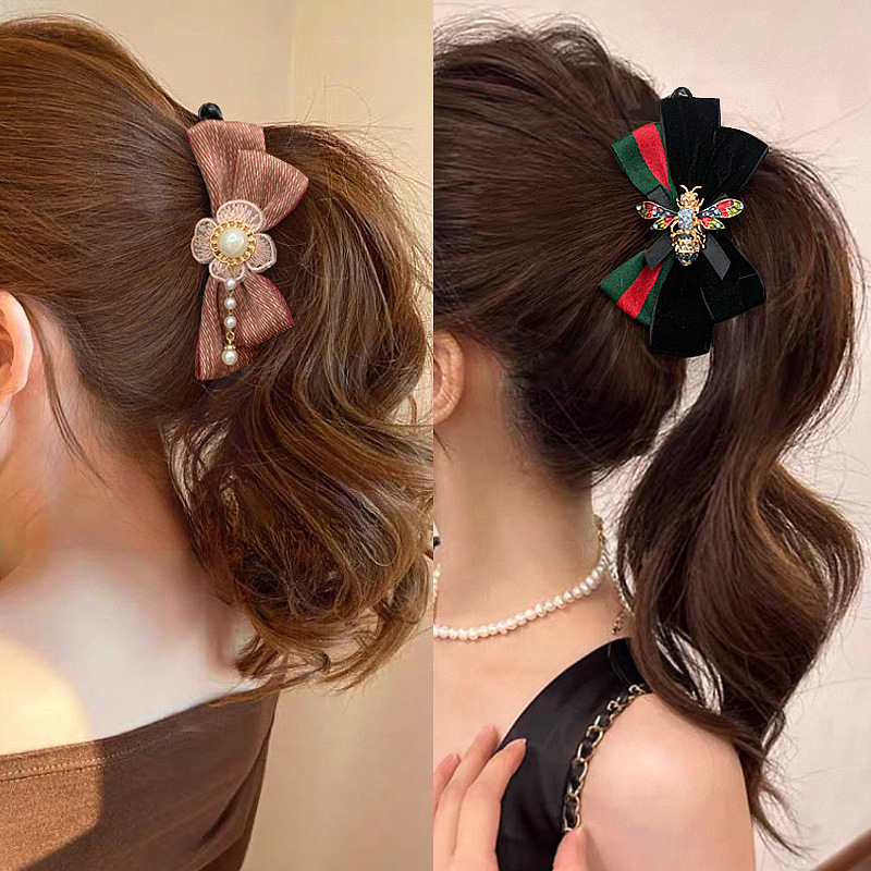 饰品发饰秋冬新款布艺蝴蝶结香蕉夹水晶兔子可爱简约盘发竖夹混批
