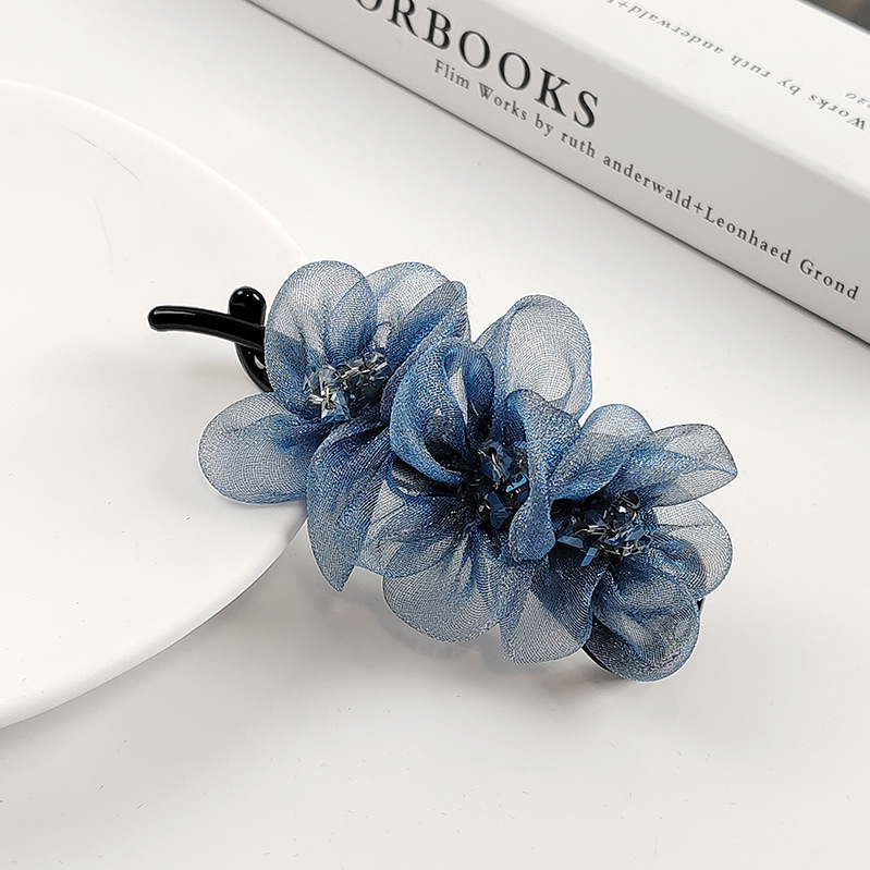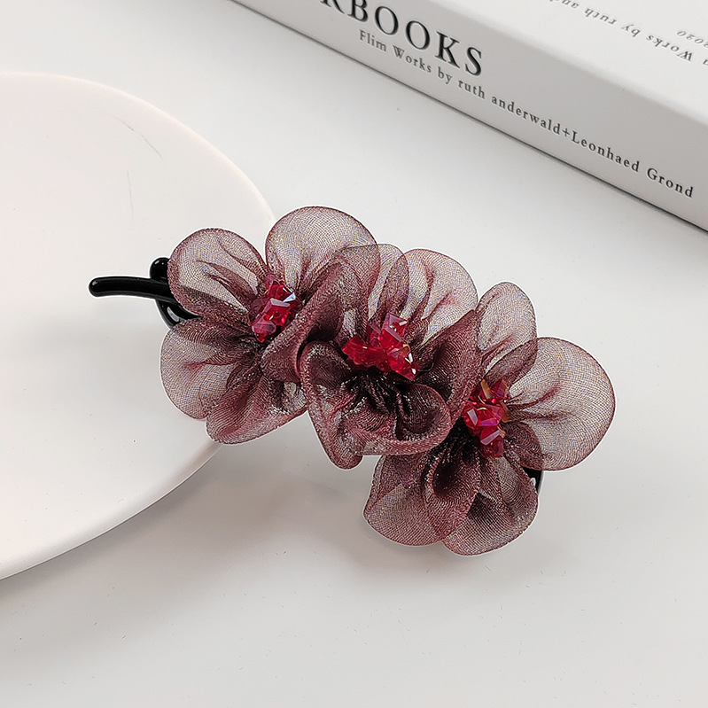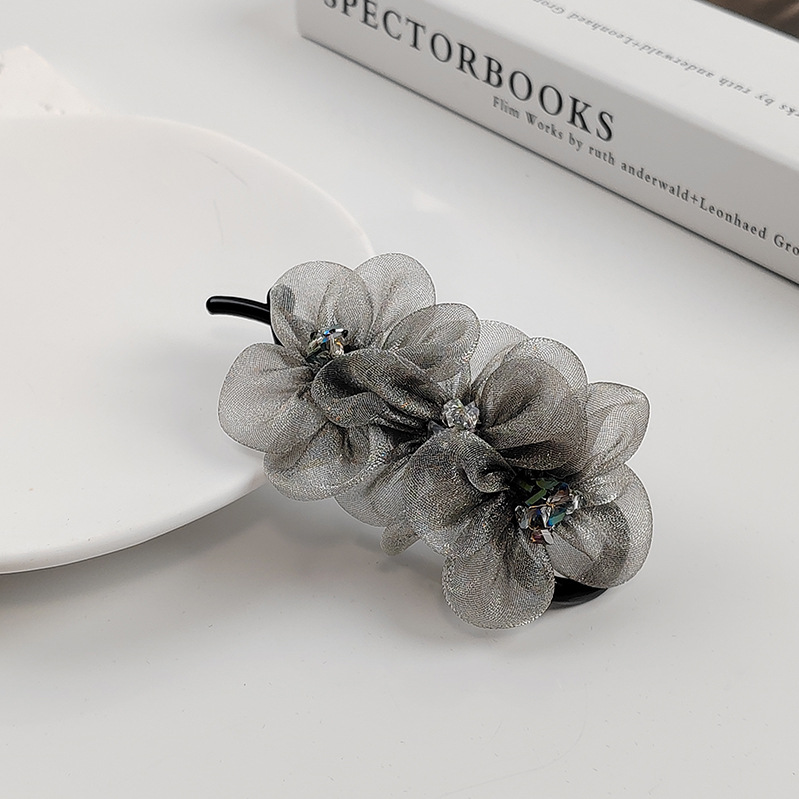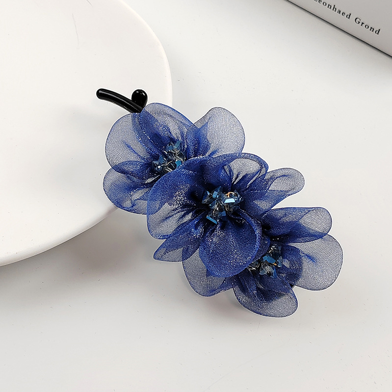 新款单色扭扭夹手工花朵头饰布艺重工气质发夹妈妈优雅发饰品批发