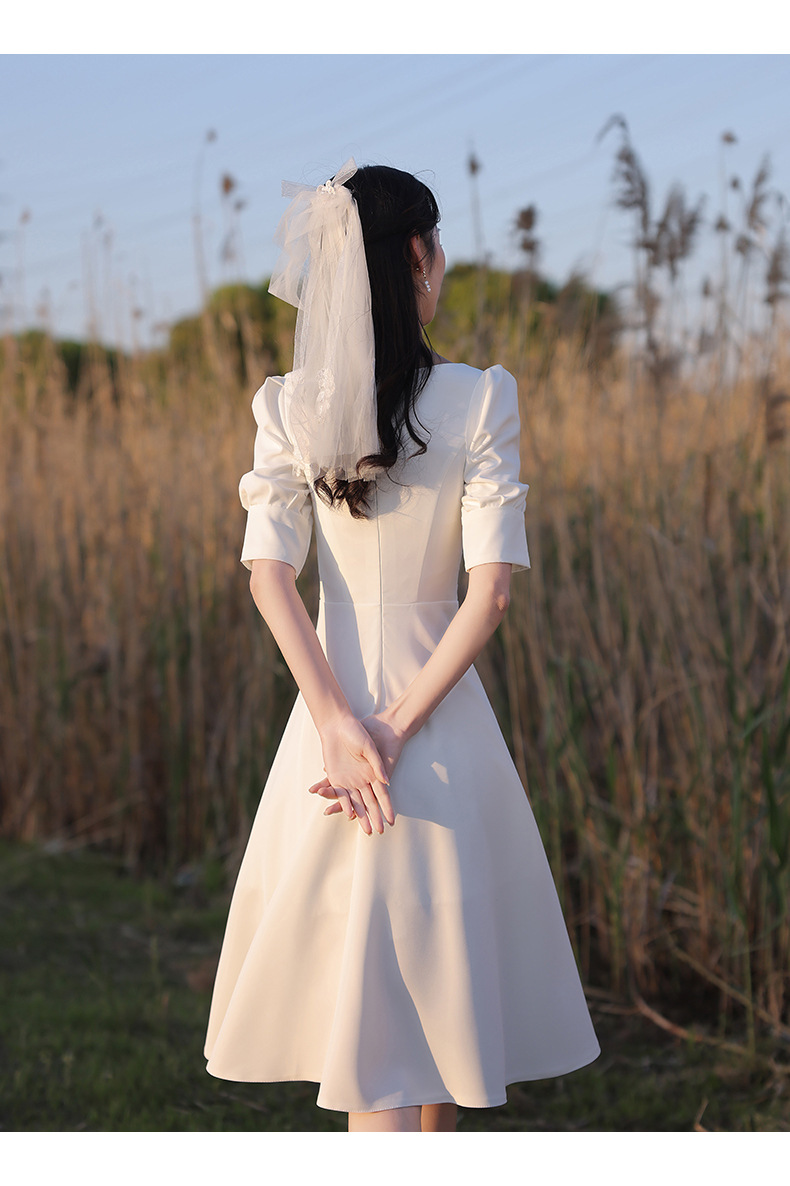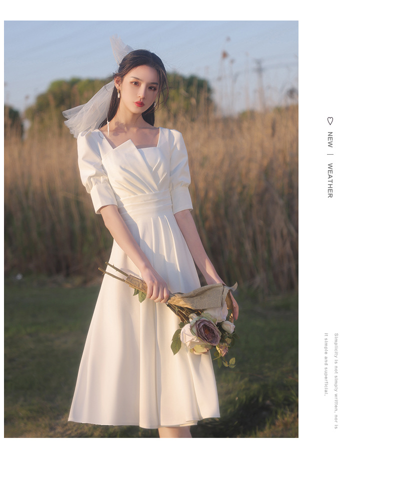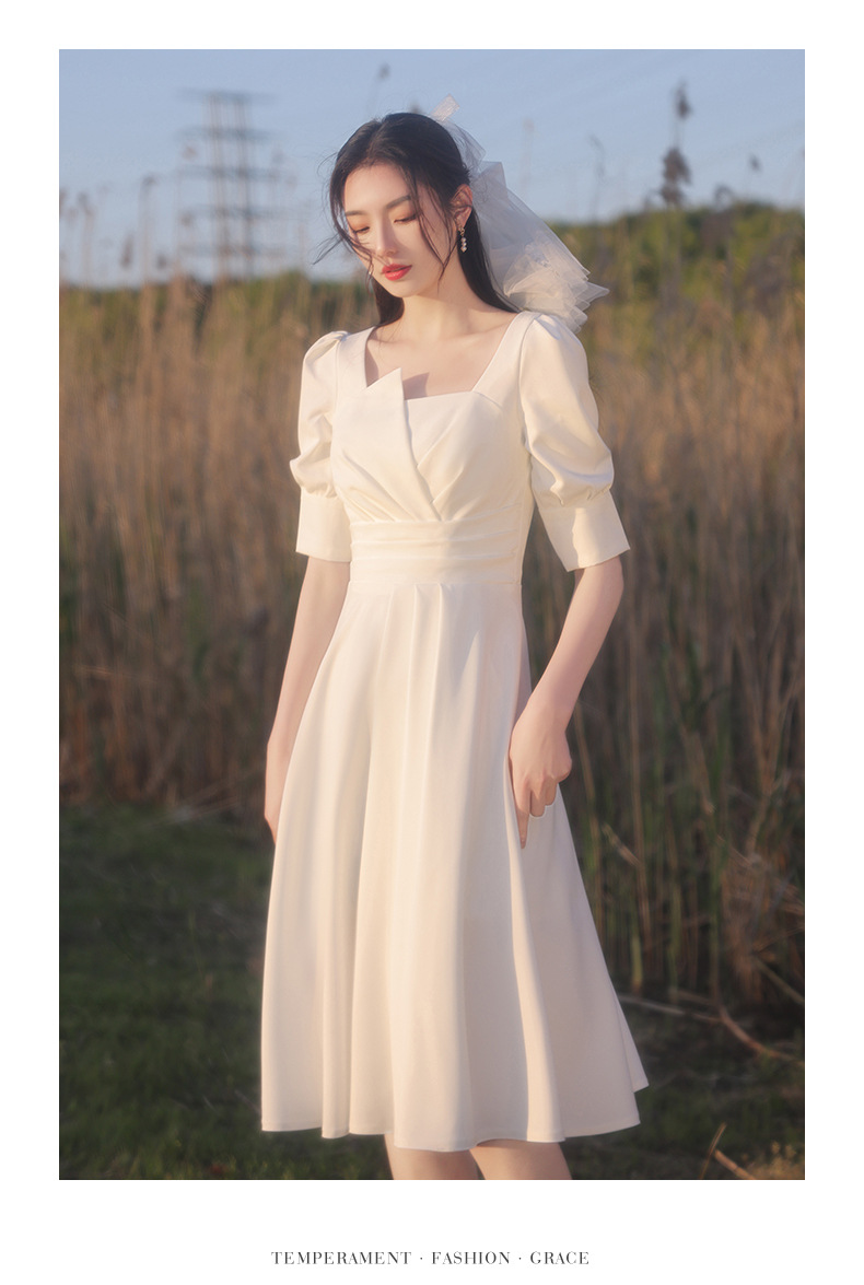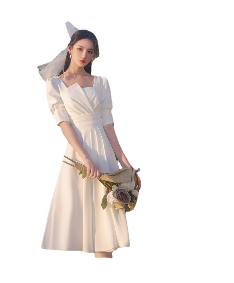 中长款白色领证伴娘服2024新款夏季闺蜜装合唱姐妹团平时可穿礼服