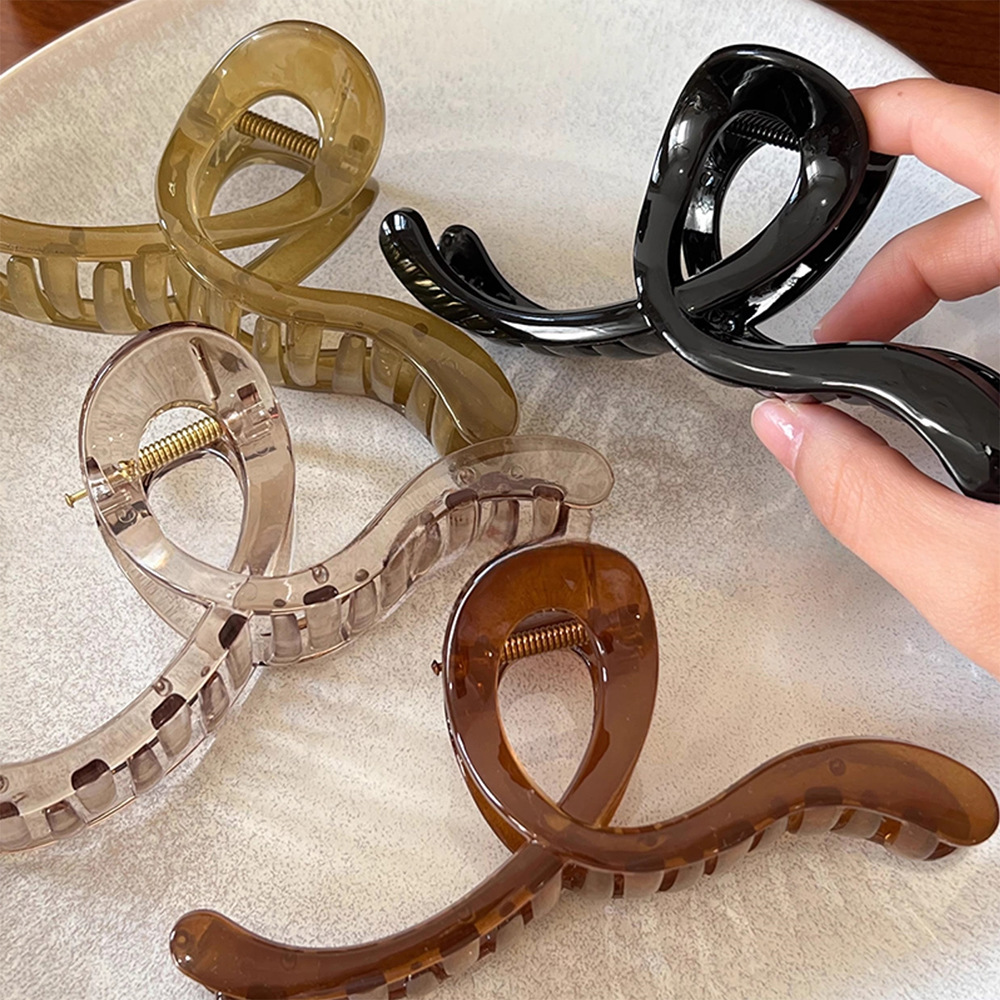 设计感几何线条后脑勺盘发抓夹女冰透百搭高端发夹头饰大号鲨鱼夹