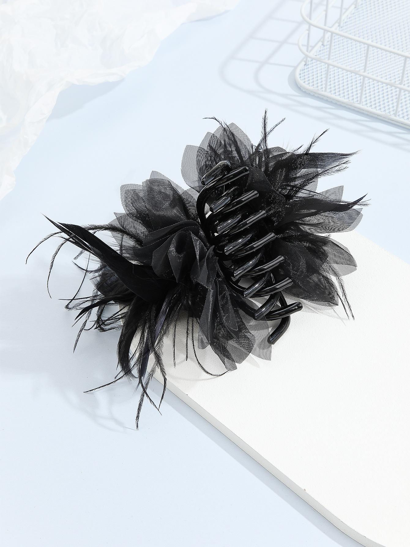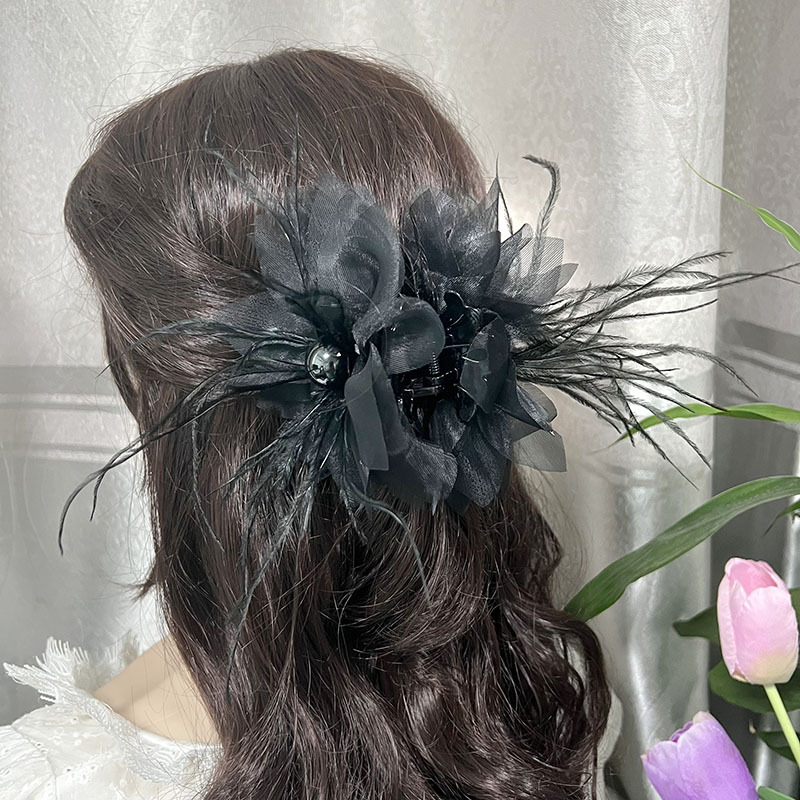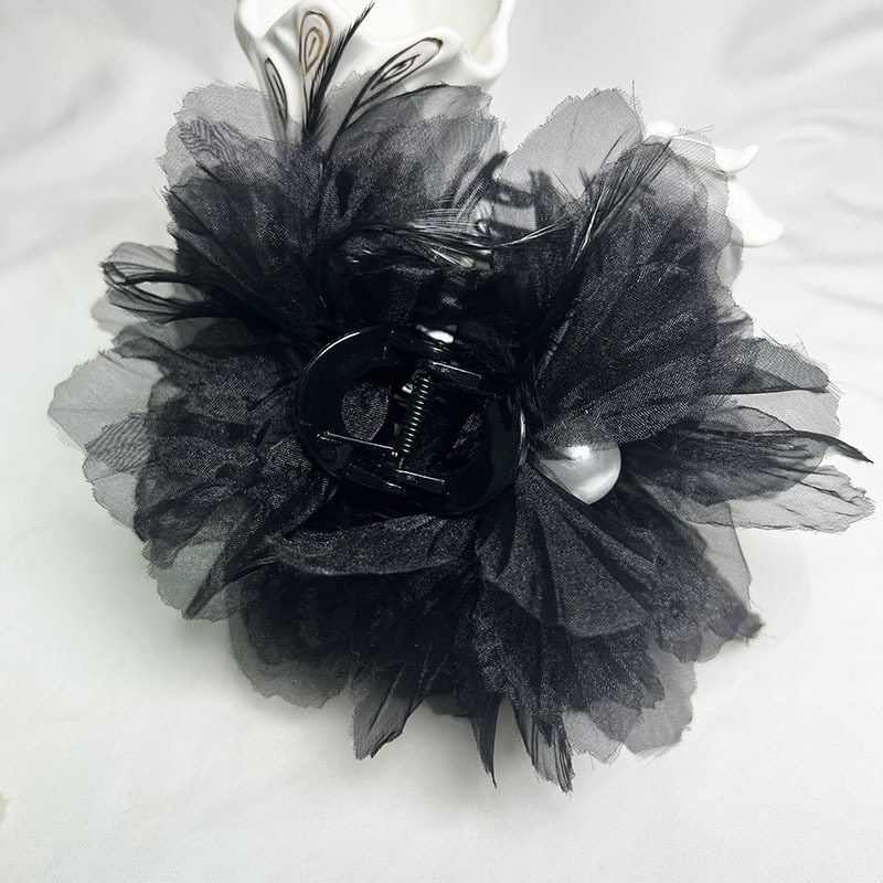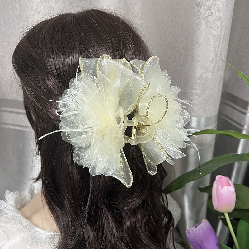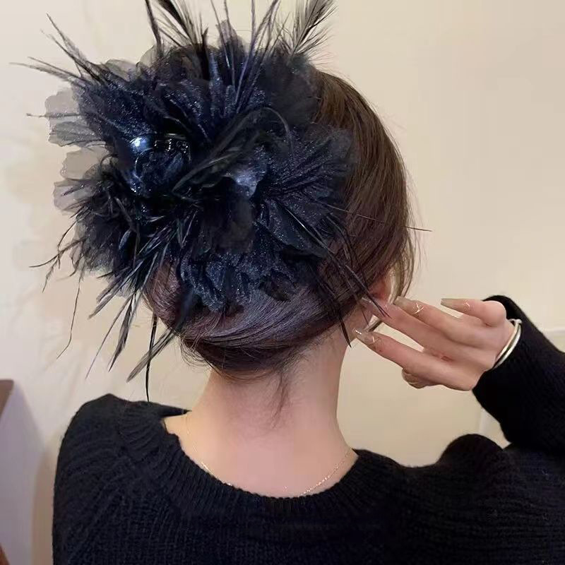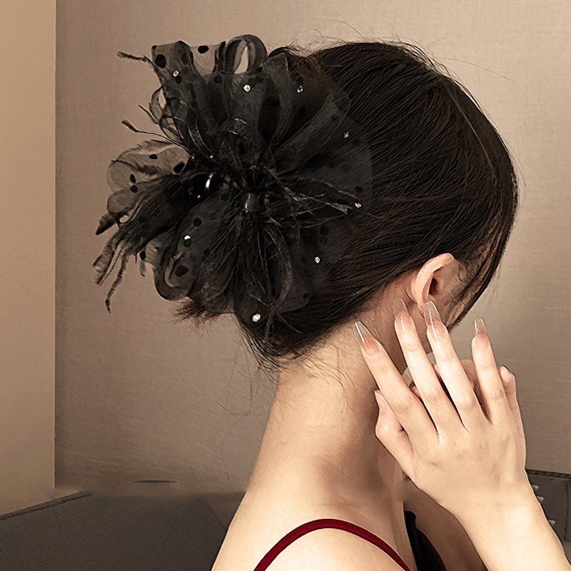 大号13cm双面羽毛发夹蝴蝶结抓夹网纱公主头显发量盘发半扎头饰