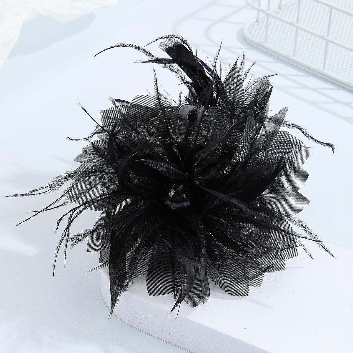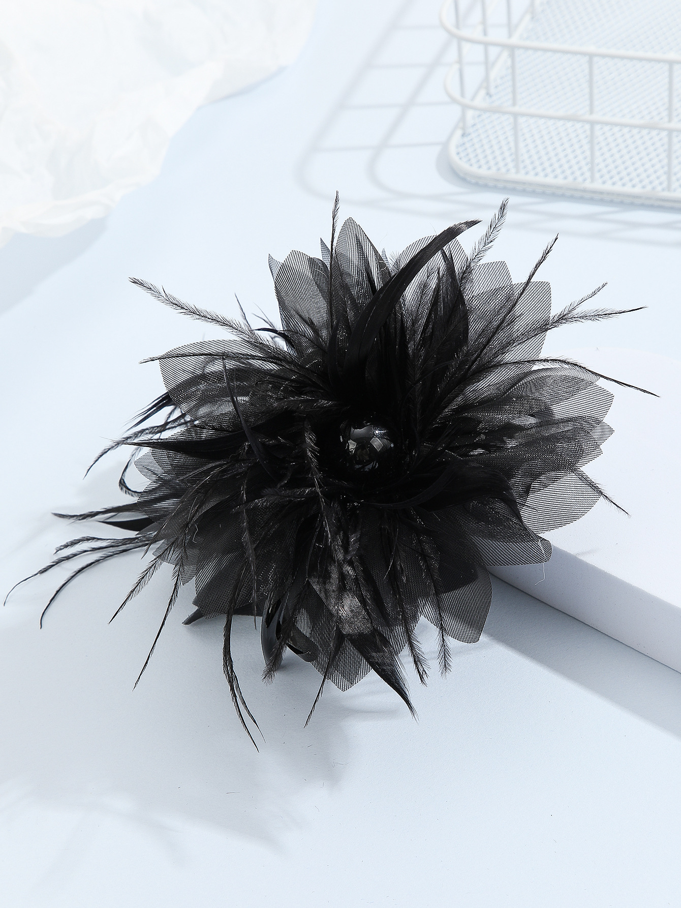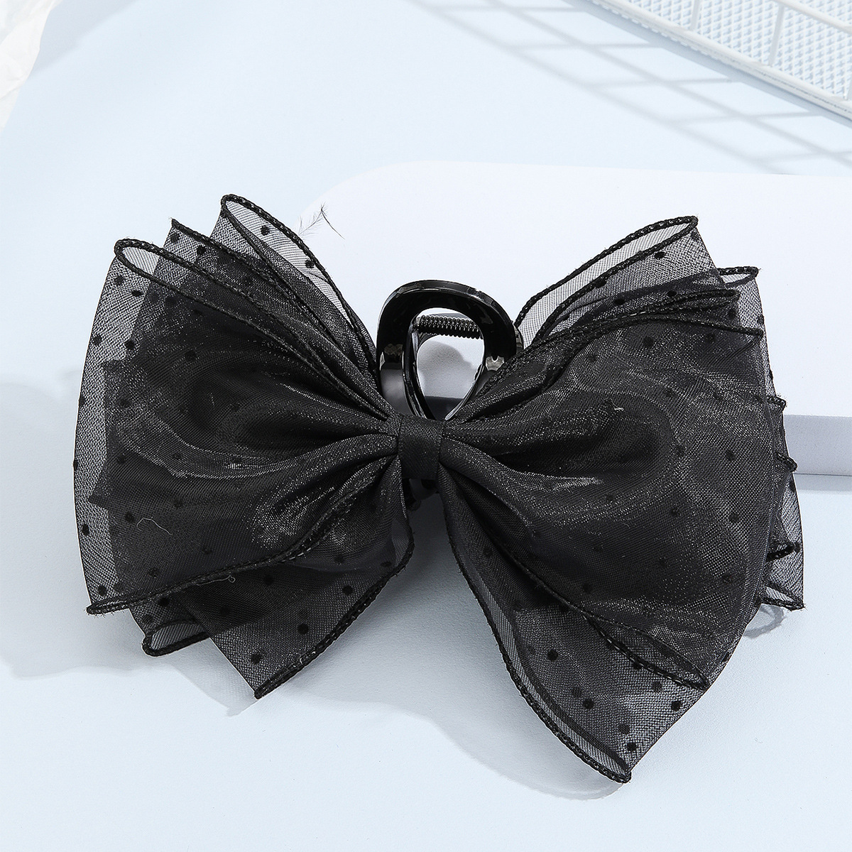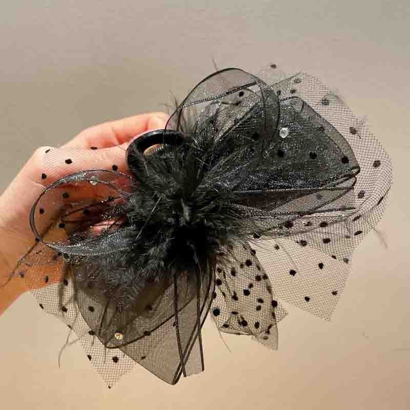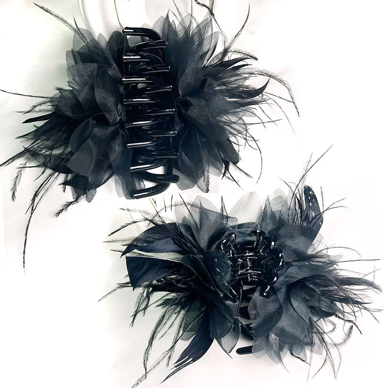 大号13cm双面羽毛发夹蝴蝶结抓夹网纱公主头显发量盘发半扎头饰