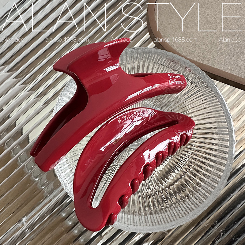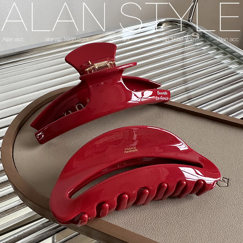 中国红色热爱~醋酸大号抓夹女网红同款发夹高级发卡鲨鱼夹盘发夹