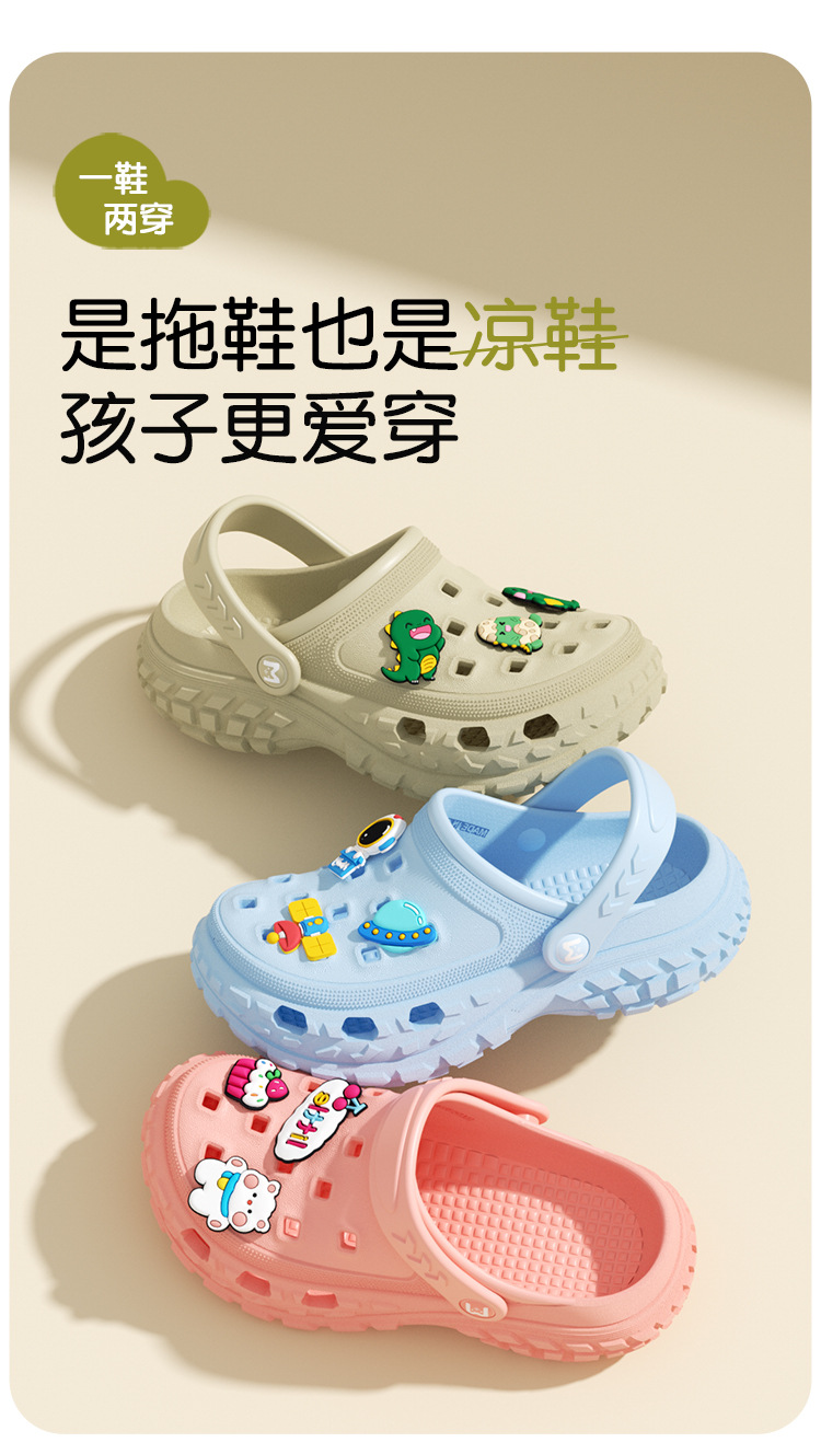 儿童拖鞋家用踩屎感卡通包头外穿洞洞鞋eva透气防滑厚底男童凉鞋