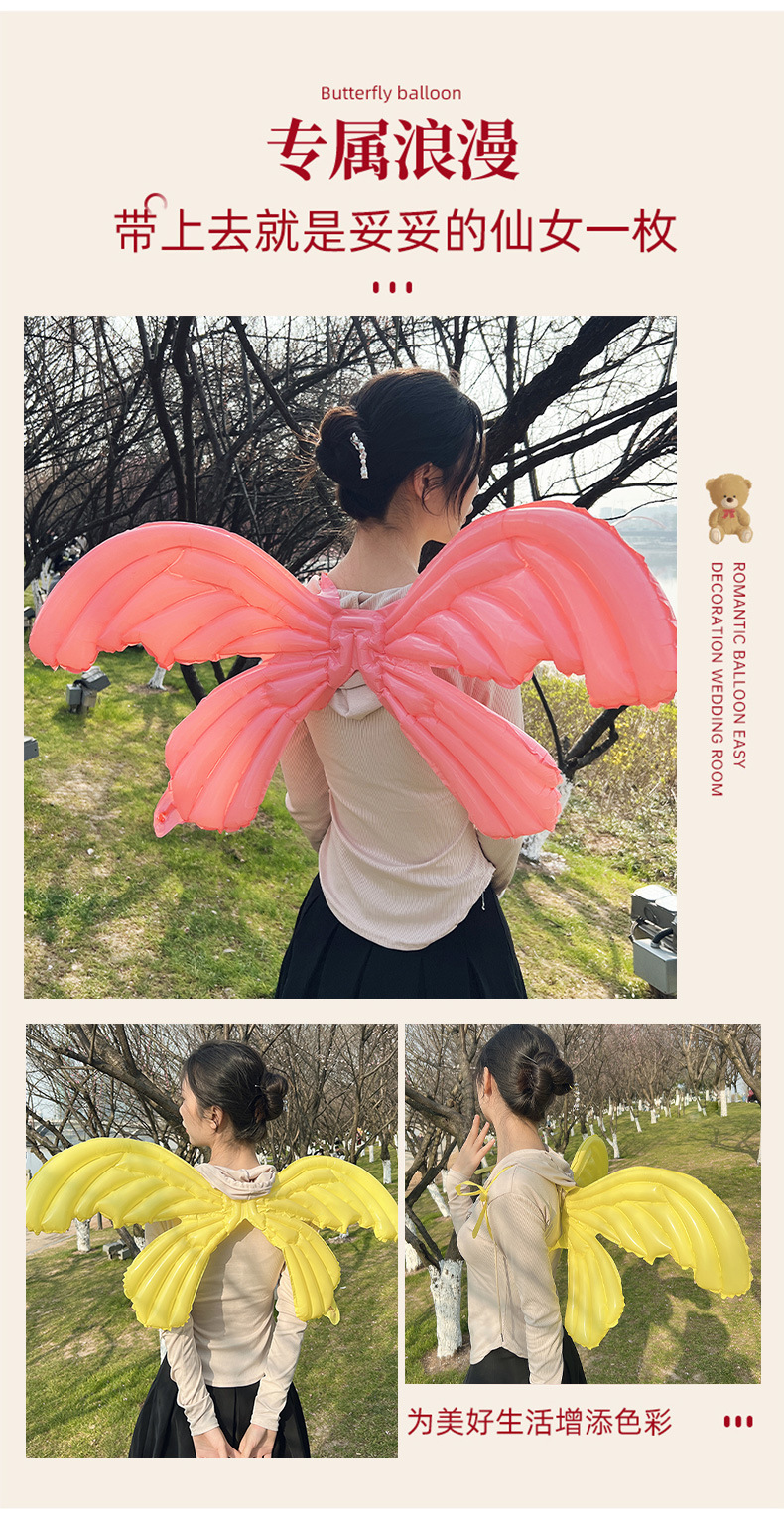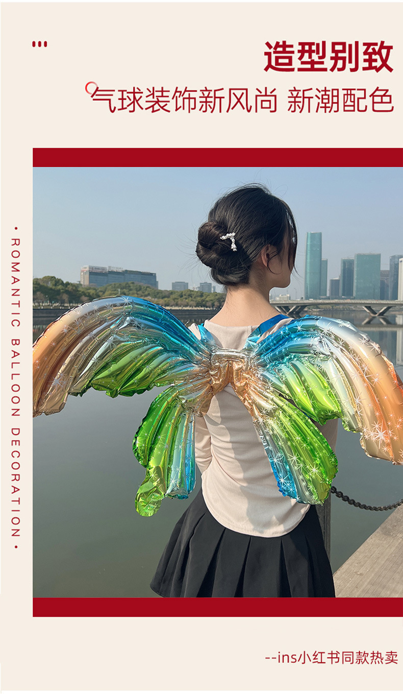 网红背挂式蝴蝶翅膀铝膜气球生日布置儿童节日装饰地推批发