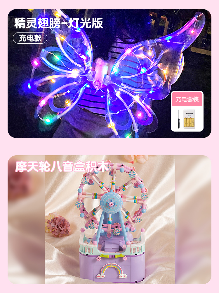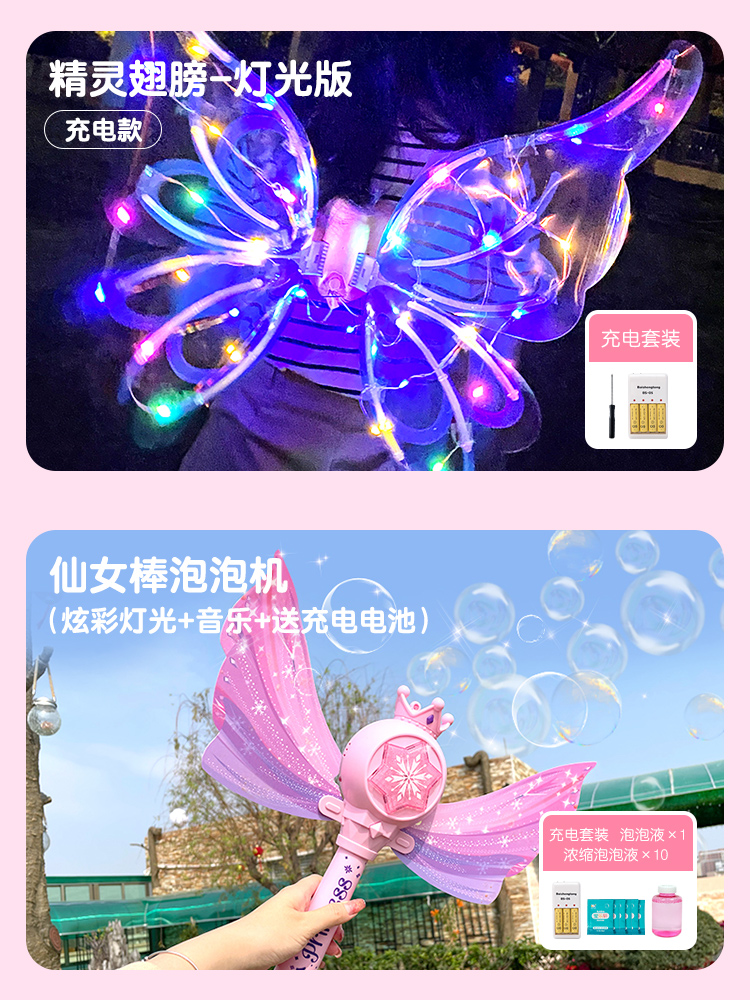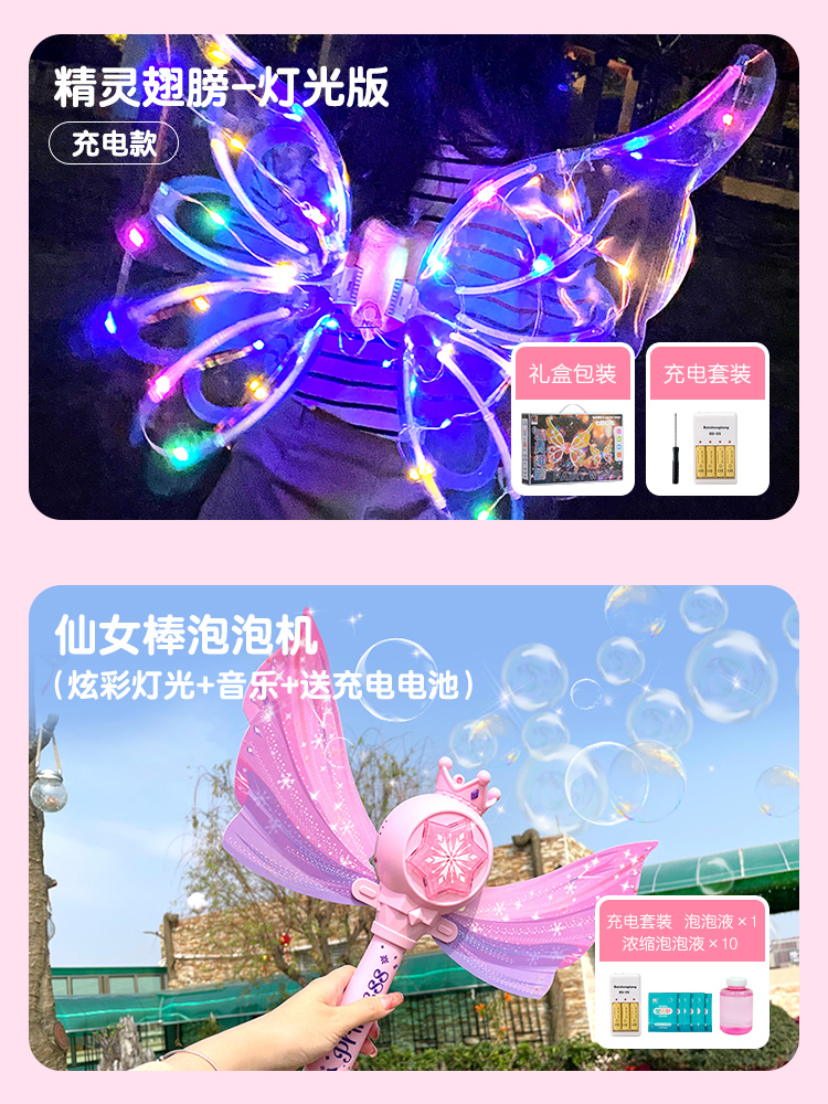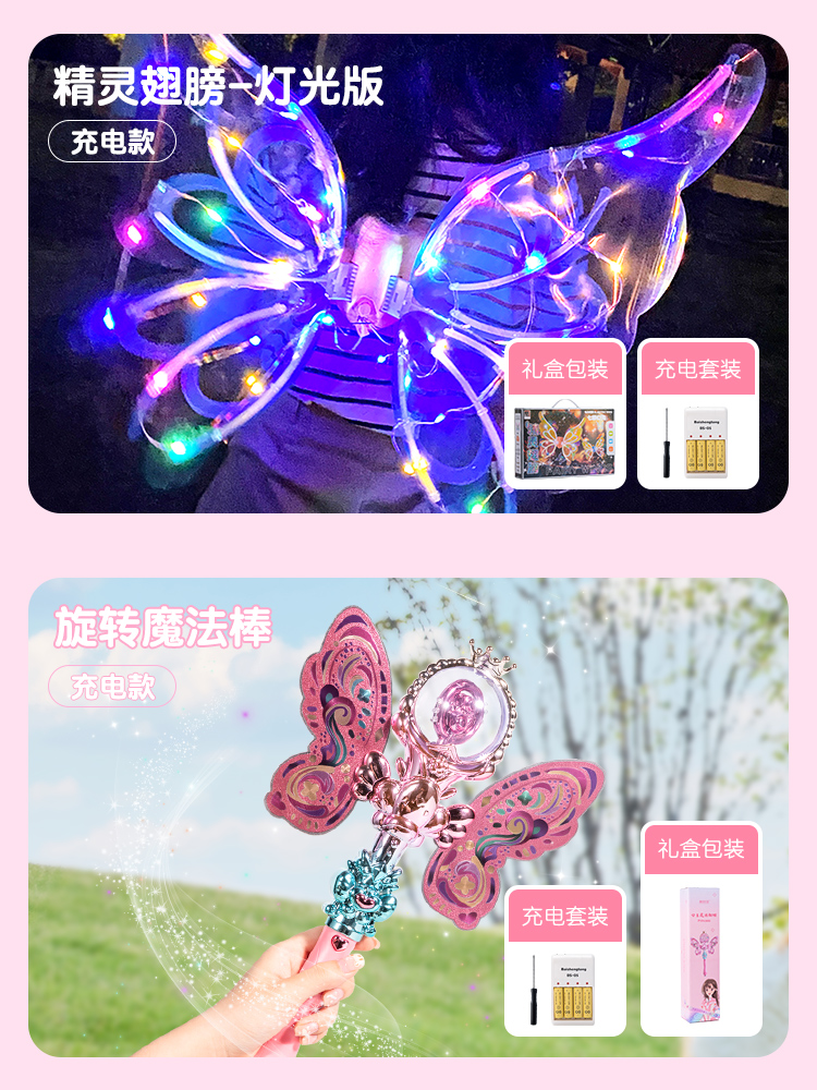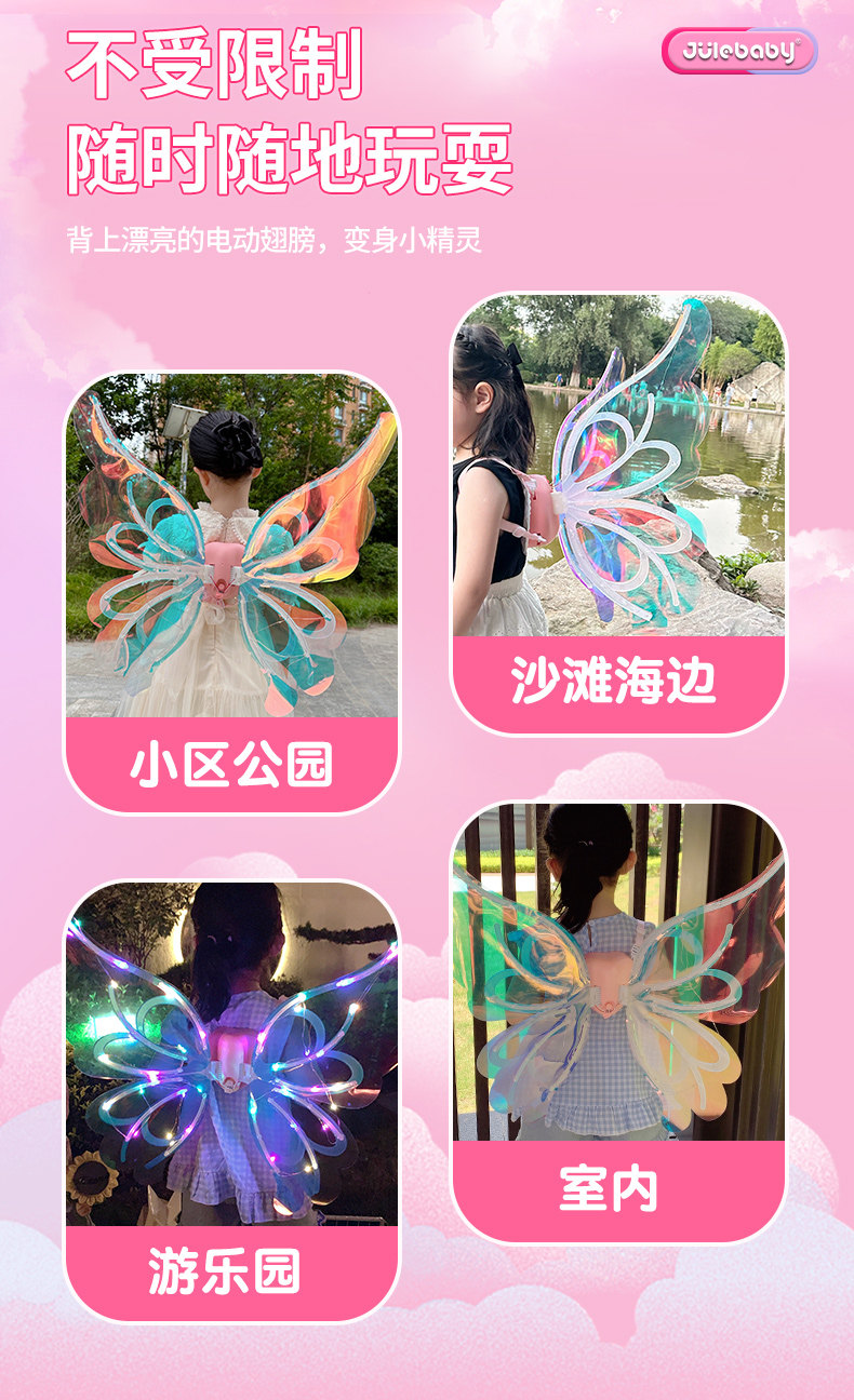 发光蝴蝶翅膀会动的精灵羽翼背饰儿童电动新年玩具小女孩生日礼物
