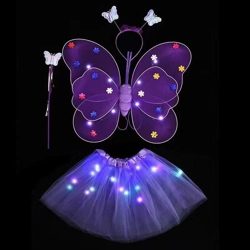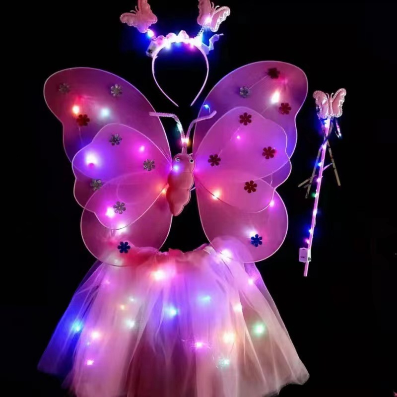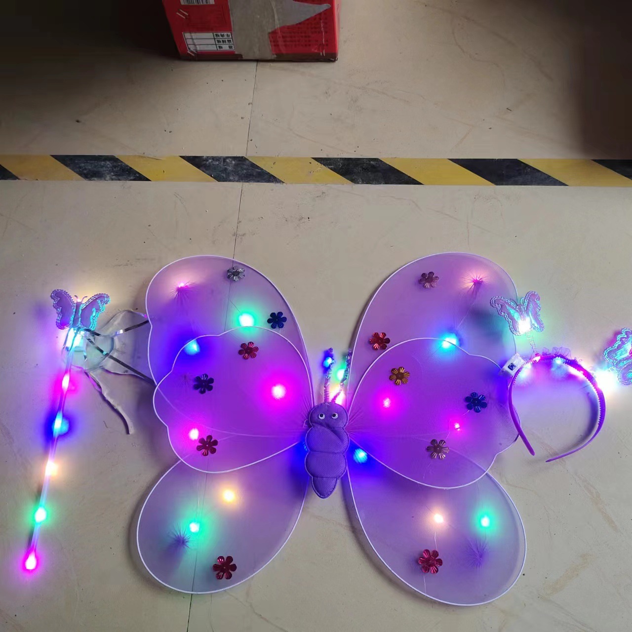 新款LED20灯发光蝴蝶翅膀儿童玩具地摊批发发光天使翅膀三件套