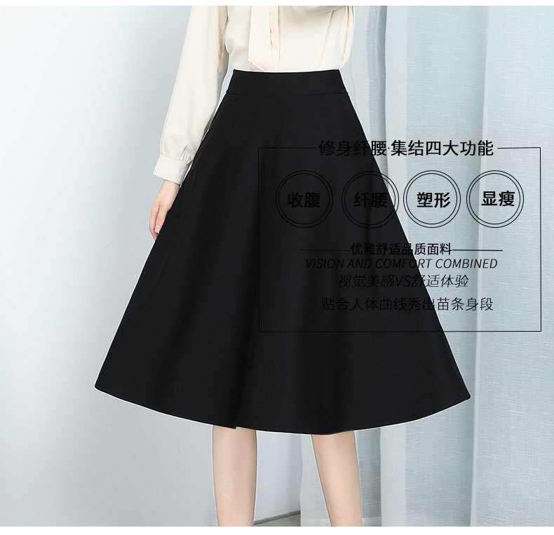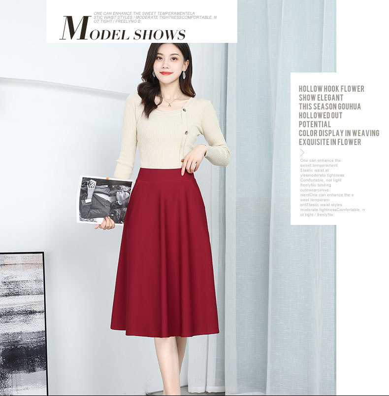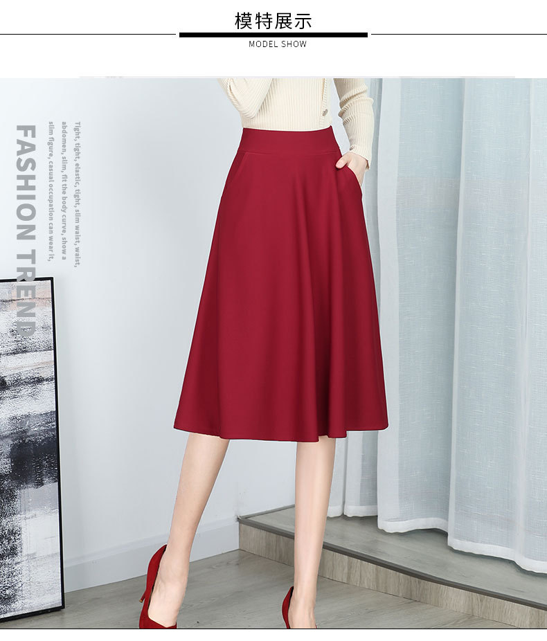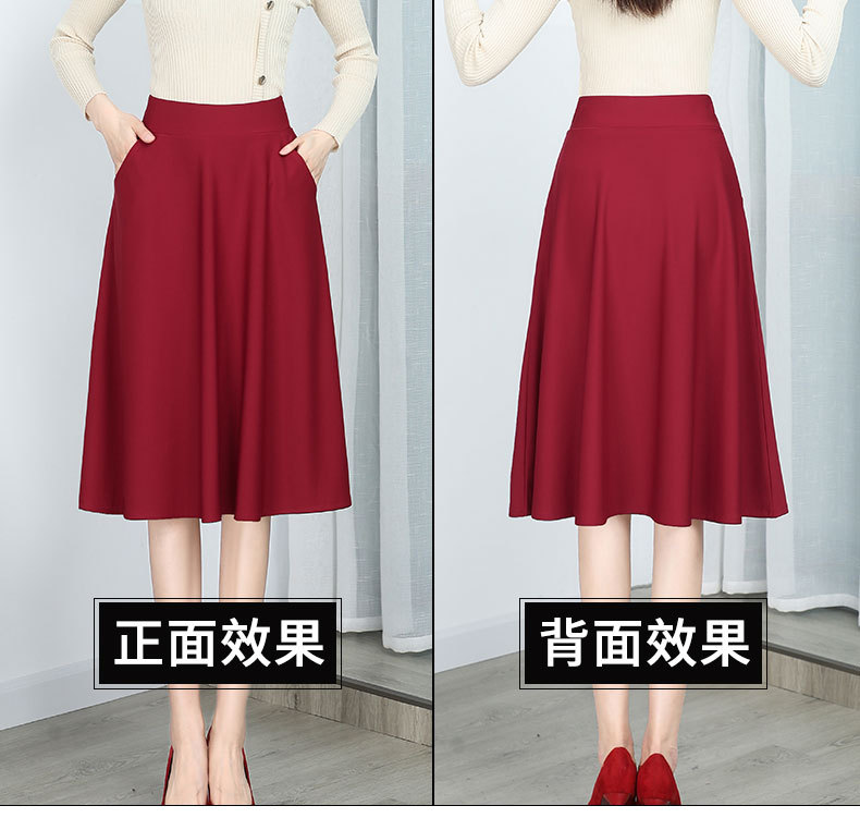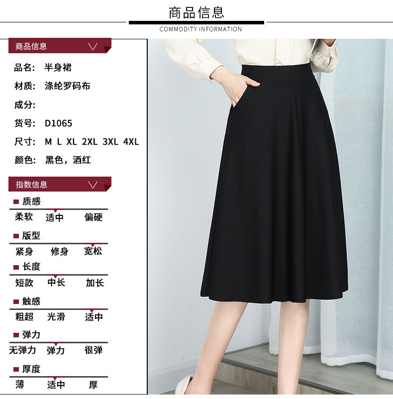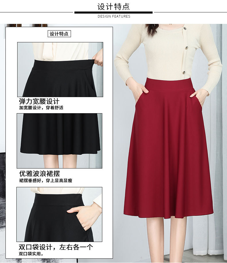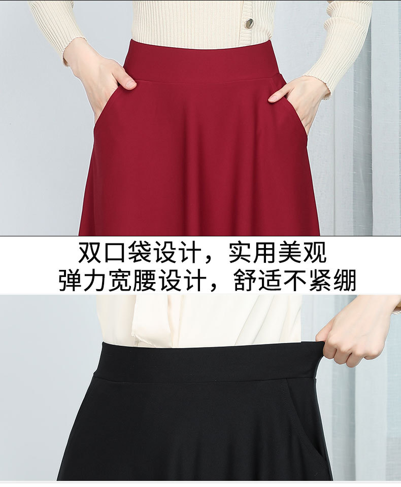 春秋中长太阳裙高腰半身裙弹力显瘦大摆裙松紧腰口袋百褶裙女黑裙